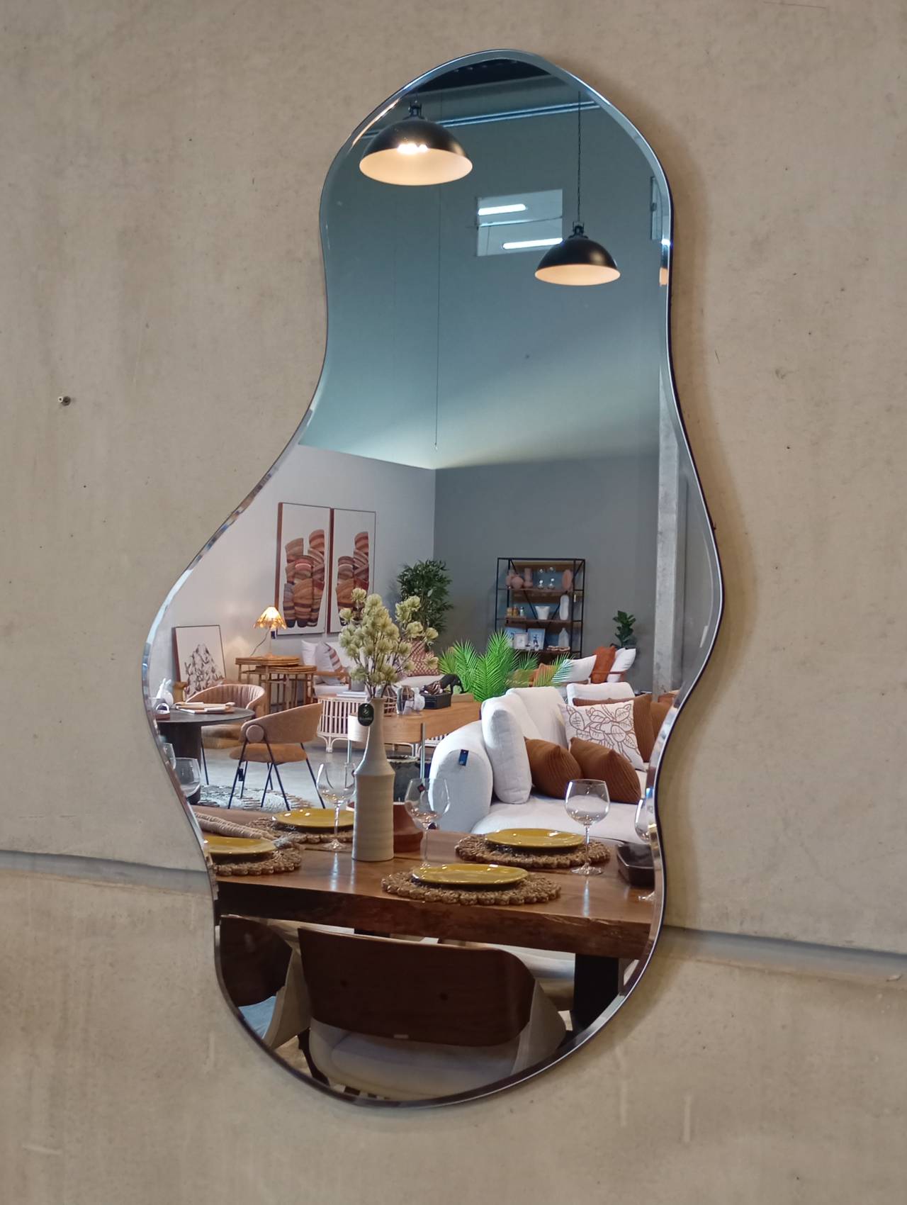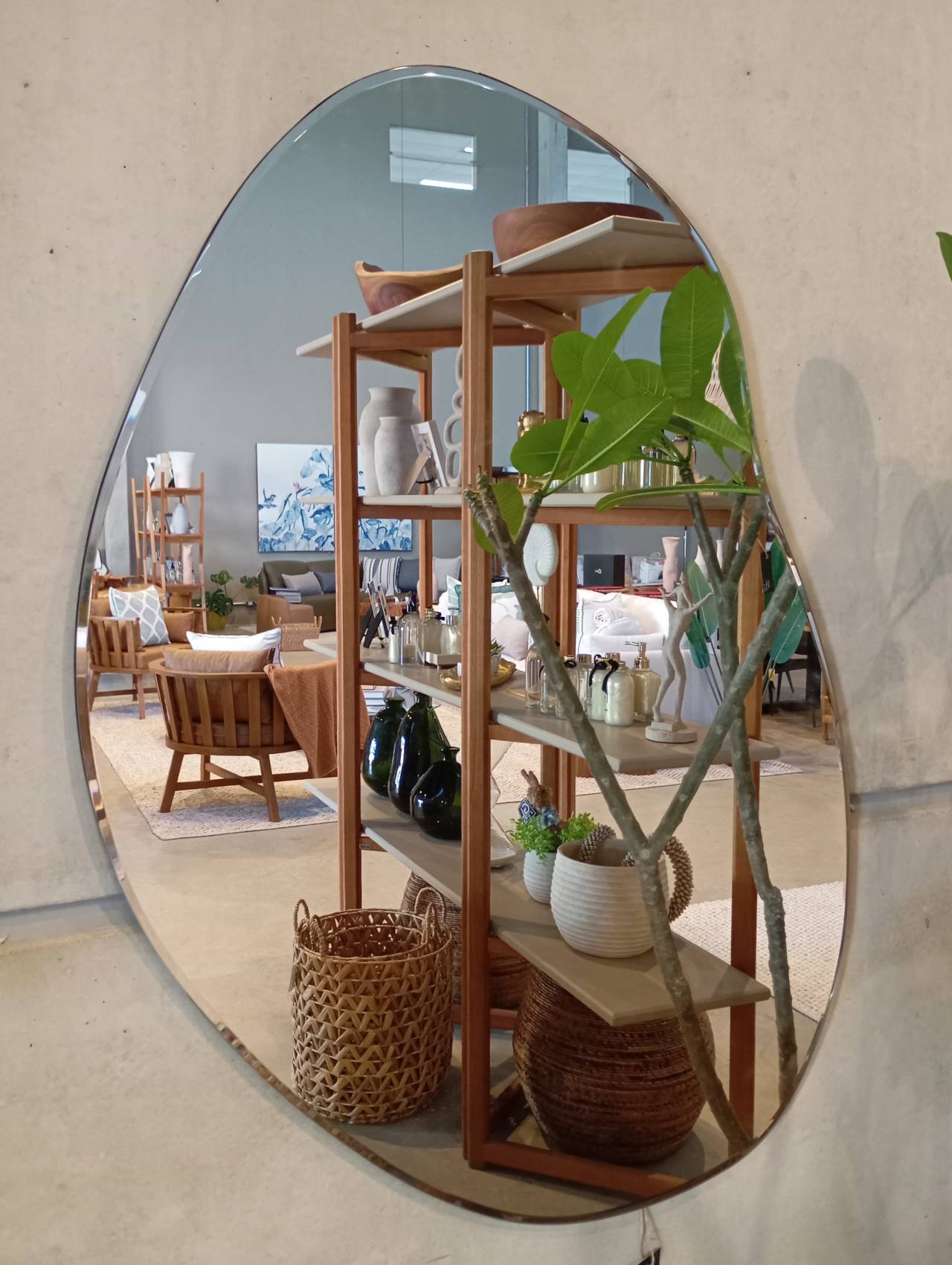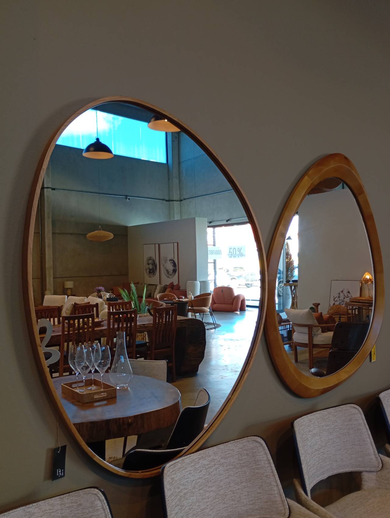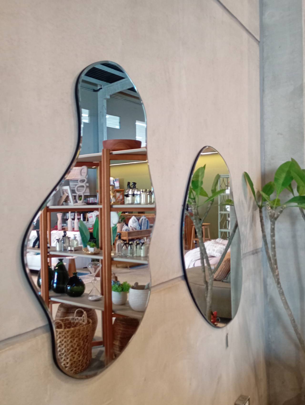 Design orgânico, com molduras em madeira ou acabamento em vidro, que se adaptam a diferentes estilos.