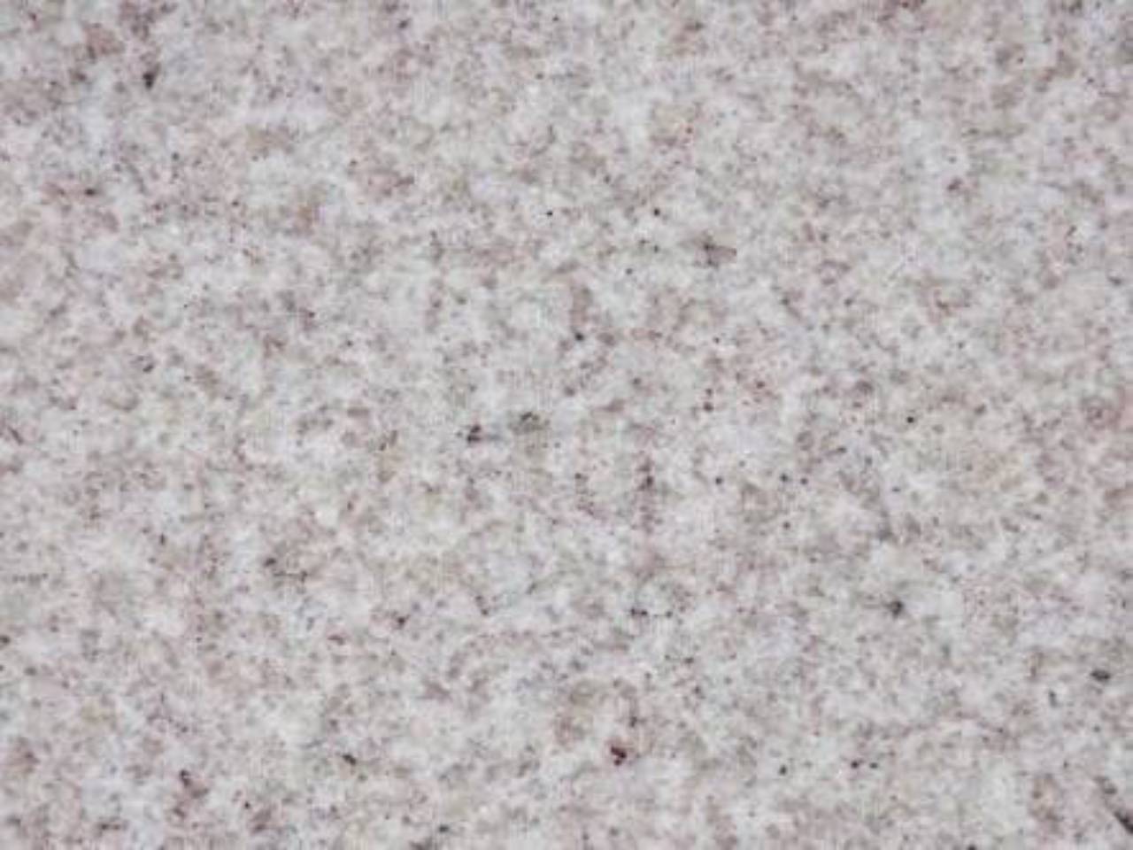 Material: Granito natural de cor clara com grãos finos, oferecendo uma aparência uniforme.