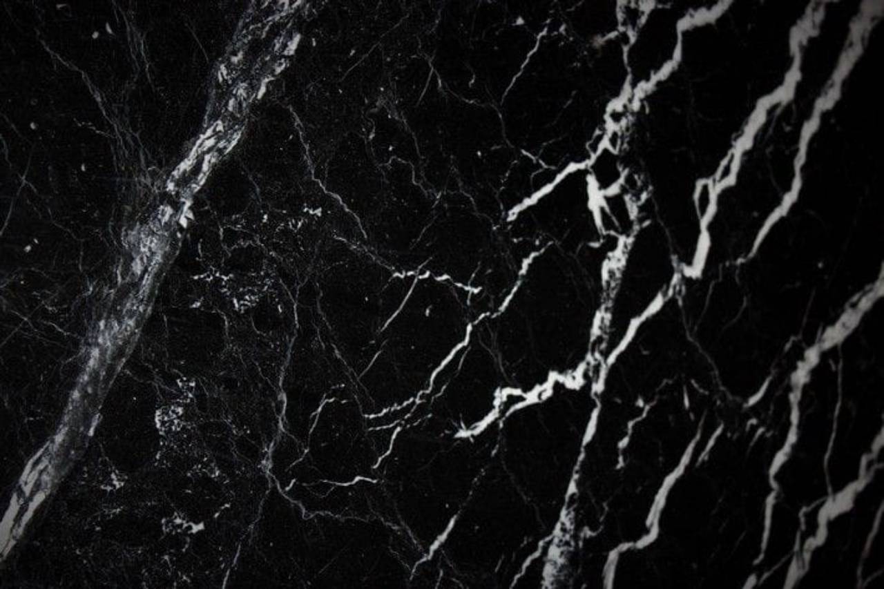 Material: Mármore natural com coloração preta intensa e veios brancos finos.