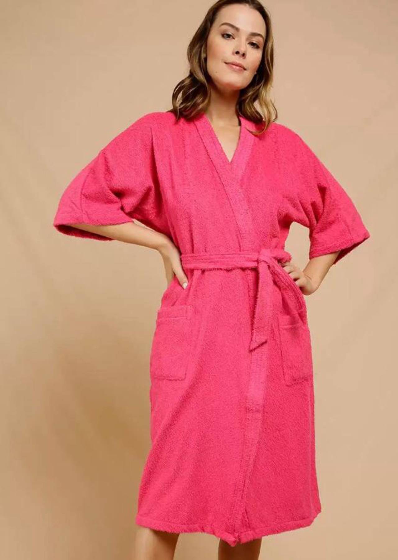 O roupão de modelagem quimono é clássico e básico. Tecido que apresenta a qualidade da felpa que não desfia, possui ótima absorção, durabilidade e fica mais macio a cada lavagem, sem perder a intensidade das cores. A hora do banho e os momentos de relaxamento podem ser mais leves.