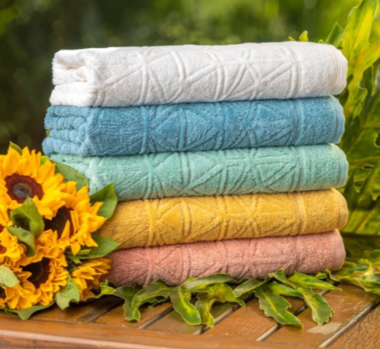 As toalhas da linha dual 100% algodão, tem o efeito de alto e baixo relevo ficando ainda mais definido nas toalhas que possuem a barra aveludada.