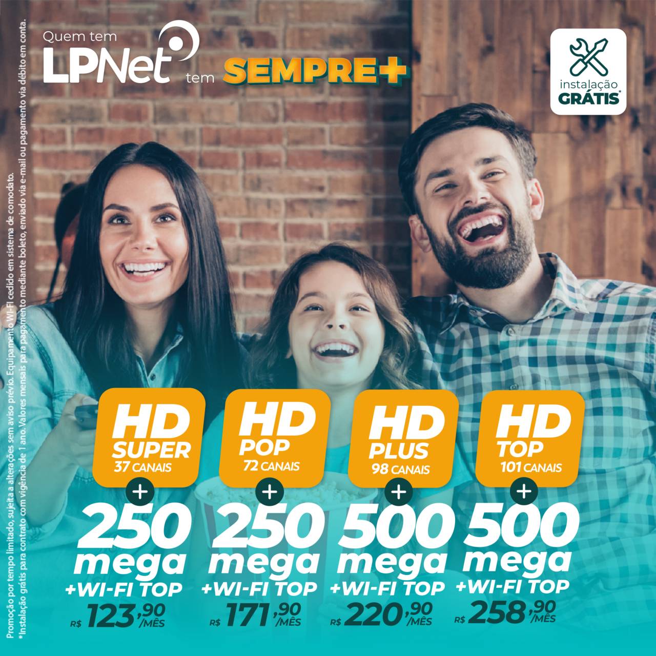 *Promoção por tempo limitado, sujeita a alterações sem aviso prévio. Equipamento Wi-fi cedido em sistema de comodato.