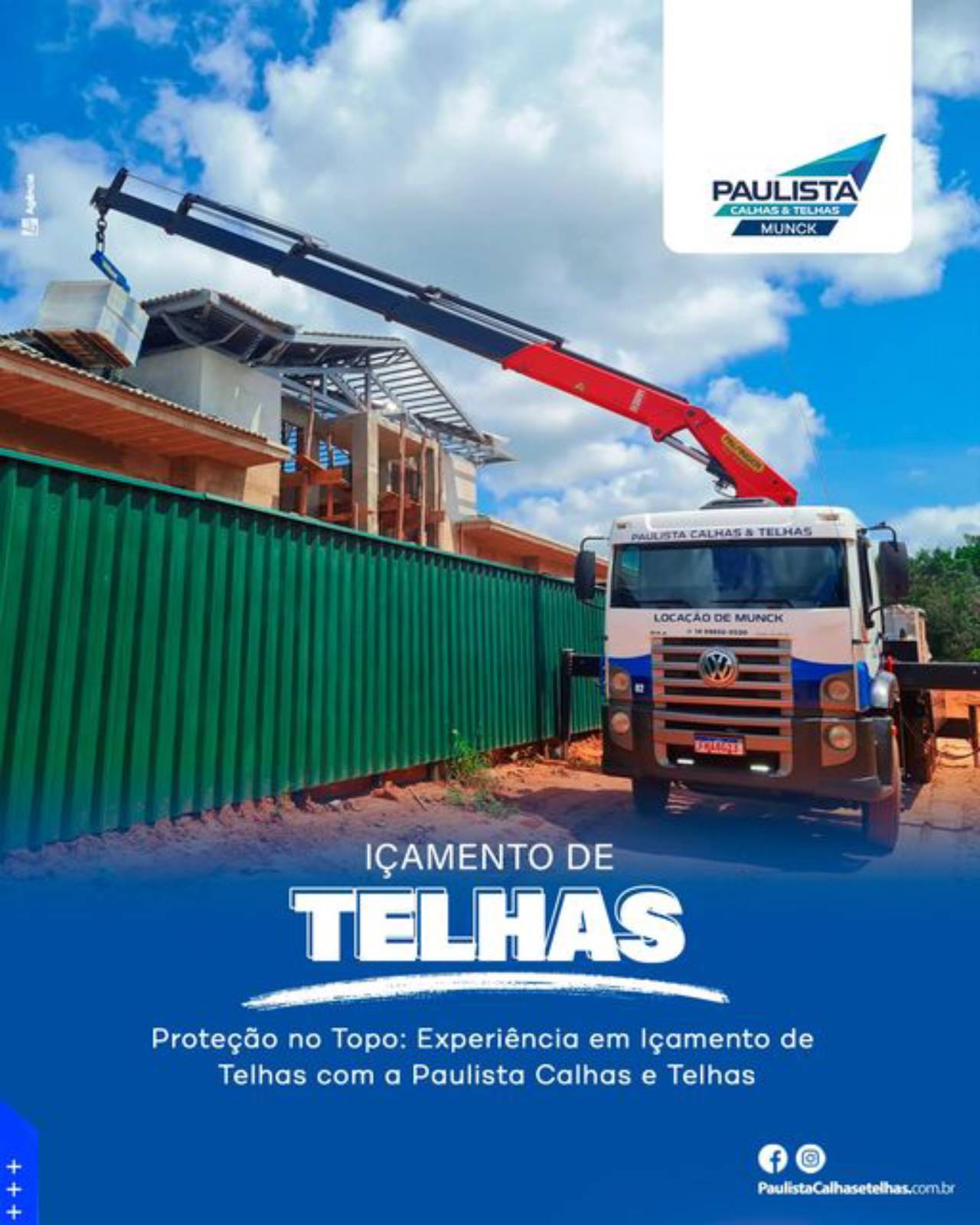 A Locação de Munck da Paulista Calhas e Telhas oferece uma solução eficiente e versátil para suas necessidades de movimentação de carga em Lençóis Paulista e região. Contamos com uma frota de equipamentos modernos e uma equipe especializada, garantindo agilidade e segurança em todas as etapas de sua obra.