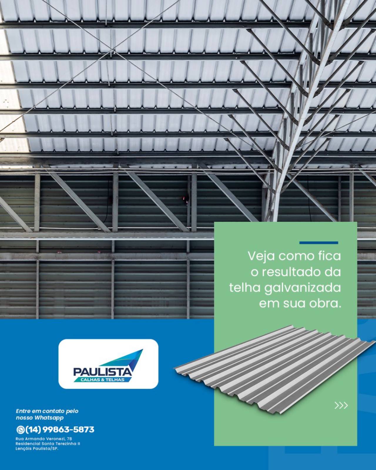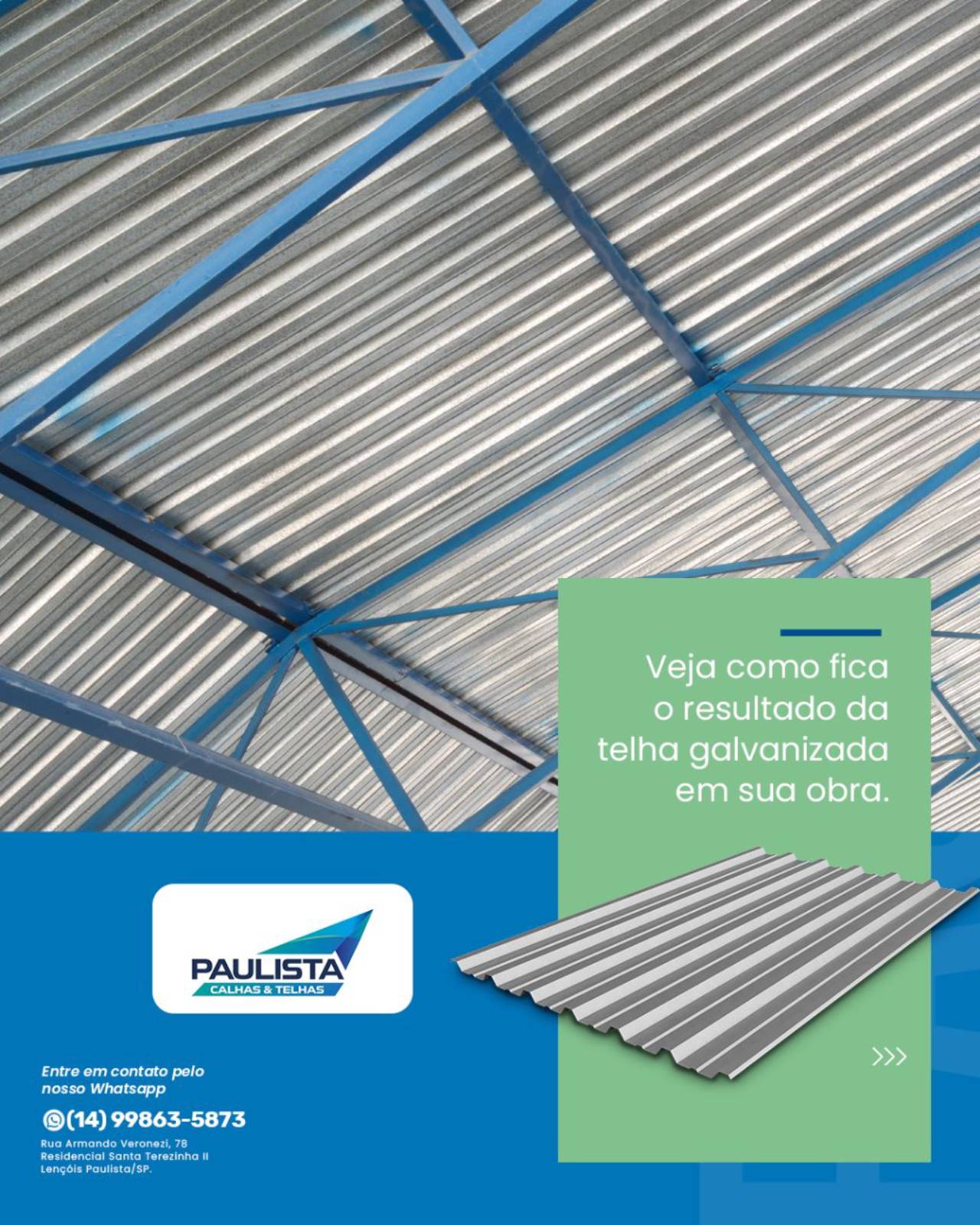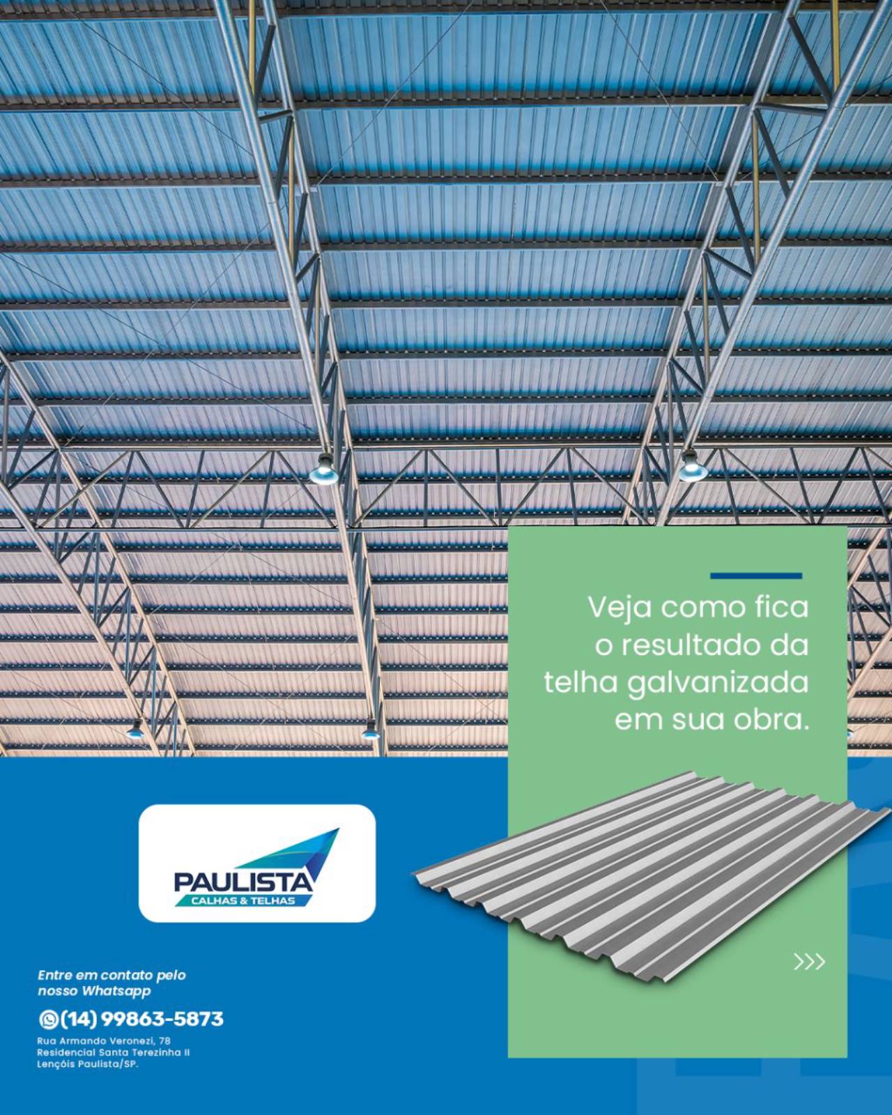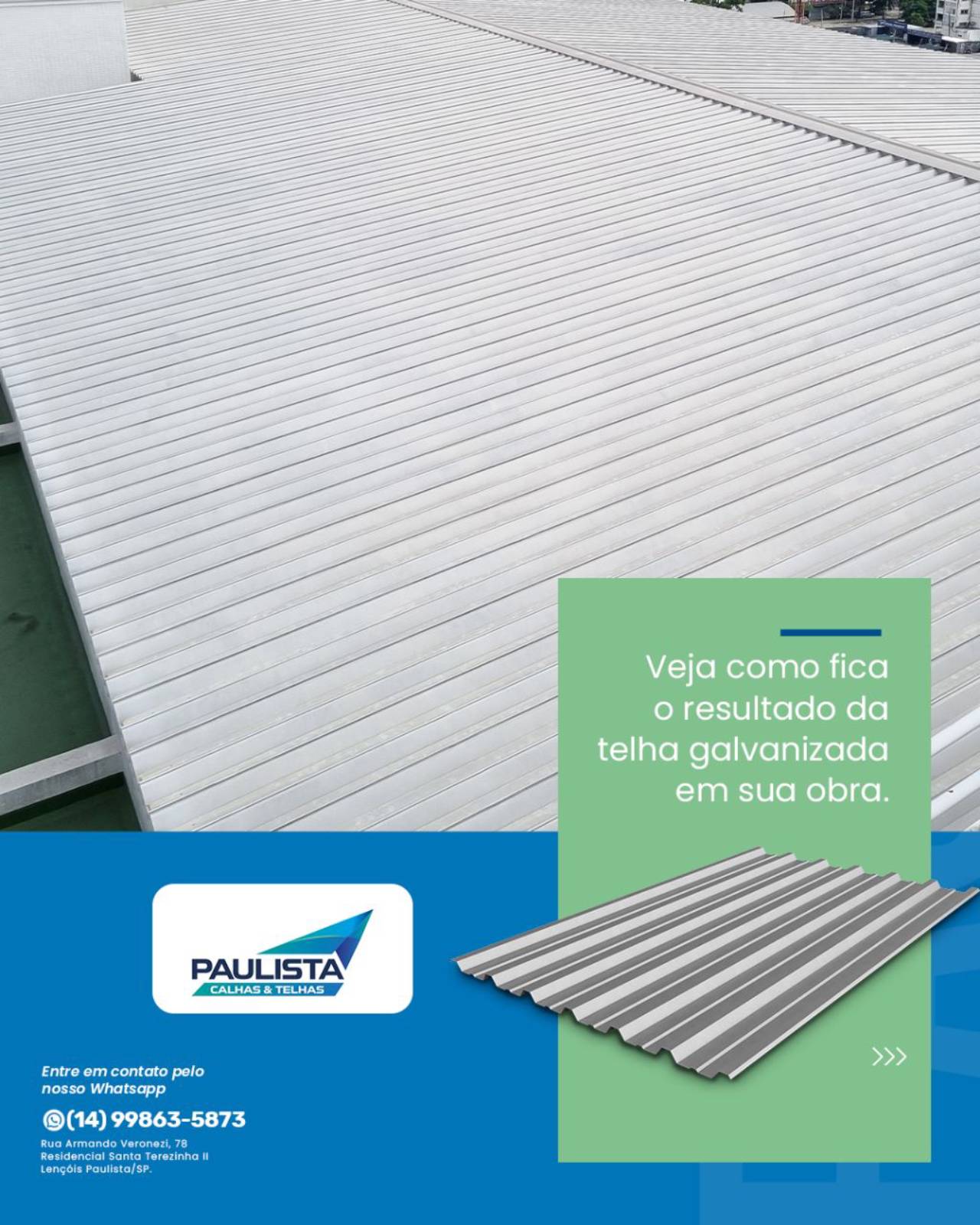Em Paulista Calhas e Telhas, oferecemos Telhas Galvanizadas de alta performance para clientes em Lençóis Paulista e região. Reconhecidas por sua resistência e durabilidade, nossas telhas não só protegem sua construção das adversidades climáticas mas também contribuem para a estética moderna e sofisticada do seu imóvel.