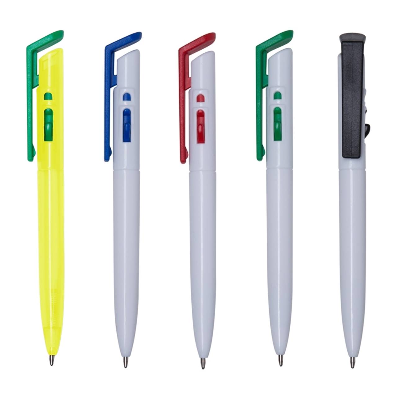 Descrição: Caneta plástica com carga esferográfica azul e acionamento por clique.