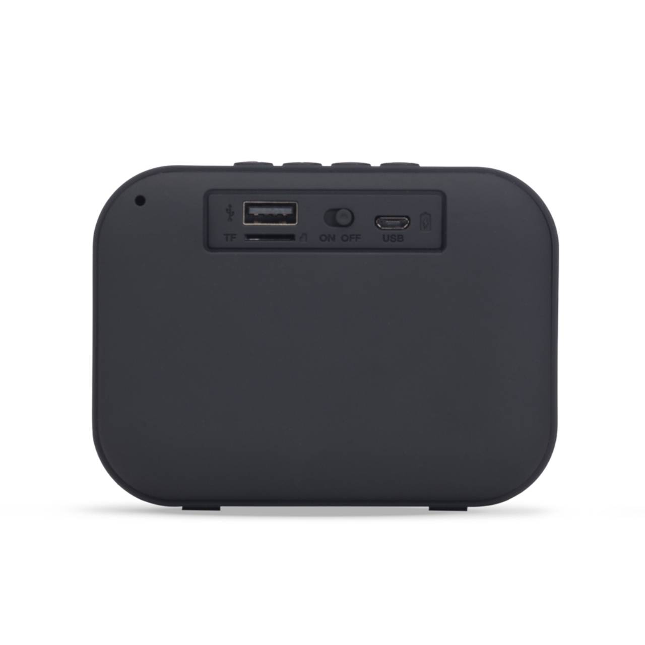 Descrição: Caixa de Som Multimídia. Produzida em material emborrachado, tela de proteção do auto-falante em tecido, parte inferior com borrachas anti-deslizantes. Possui os botões de Play/Pause; Aumentar e diminuir volume/avançar e retroceder faixas; Modo; Entrada USB; Entrada TF (cartão MicroSD); Botão On/Off e Entrada DC 5V. Acompanha cabo USB.