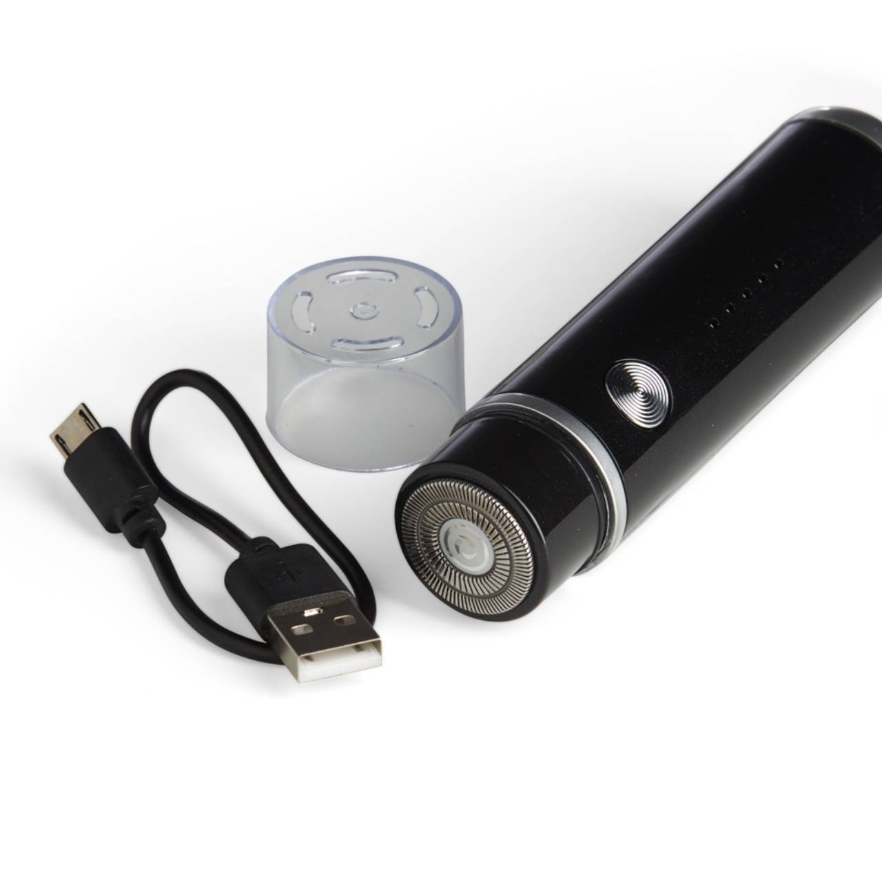 Descrição: Aparador de barba elétrico recarregável. Possui status da bateria visível e botão antiderrapante para uma maior aderência ao toque. Acompanha cabo USB Tipo-C, escovinha para limpeza e tampa protetora.