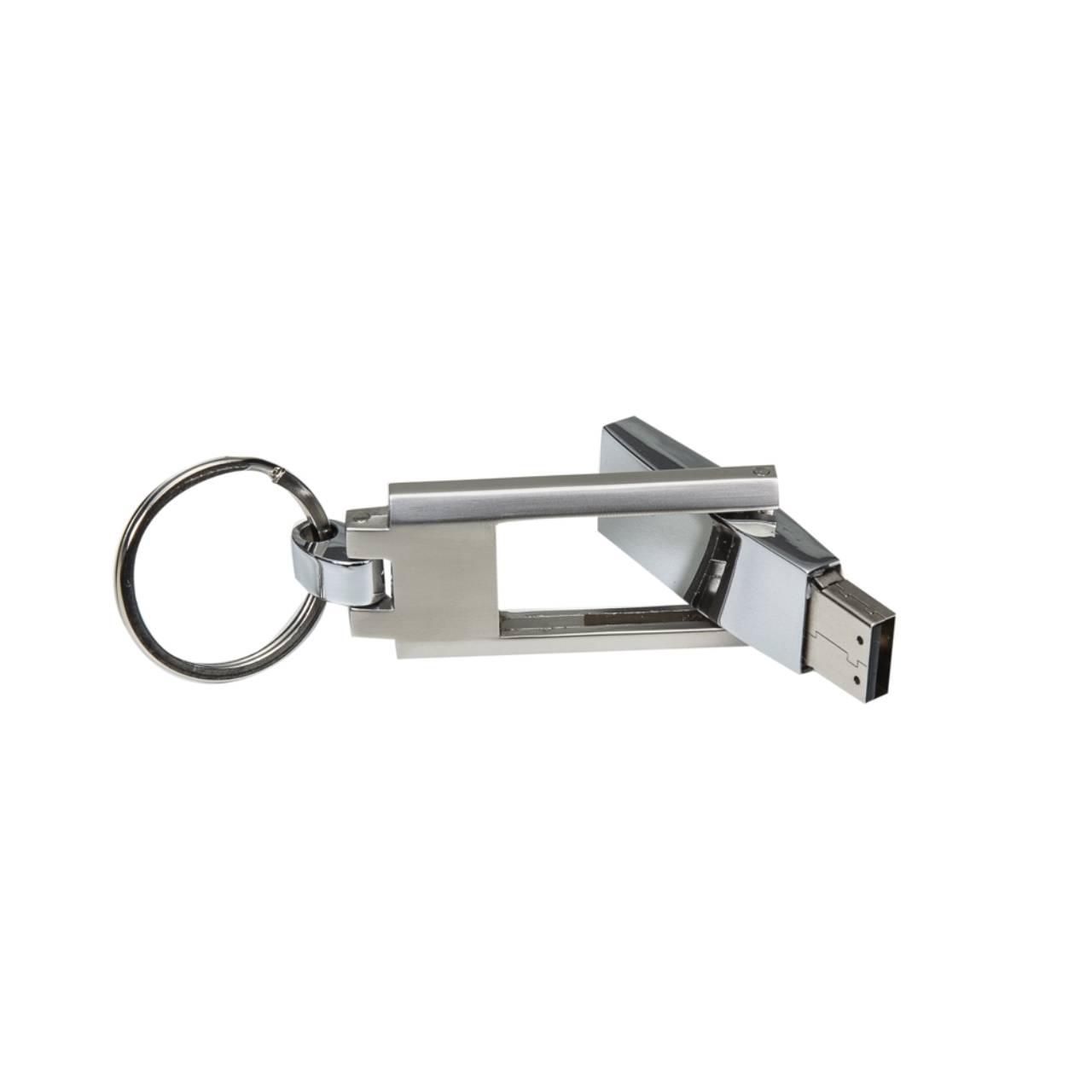 Descrição: Pen drive grande de metal com chaveiro. Suporte fosco e compartimento do pen drive brilhante, basta puxá-lo e girá-lo para utilização.
