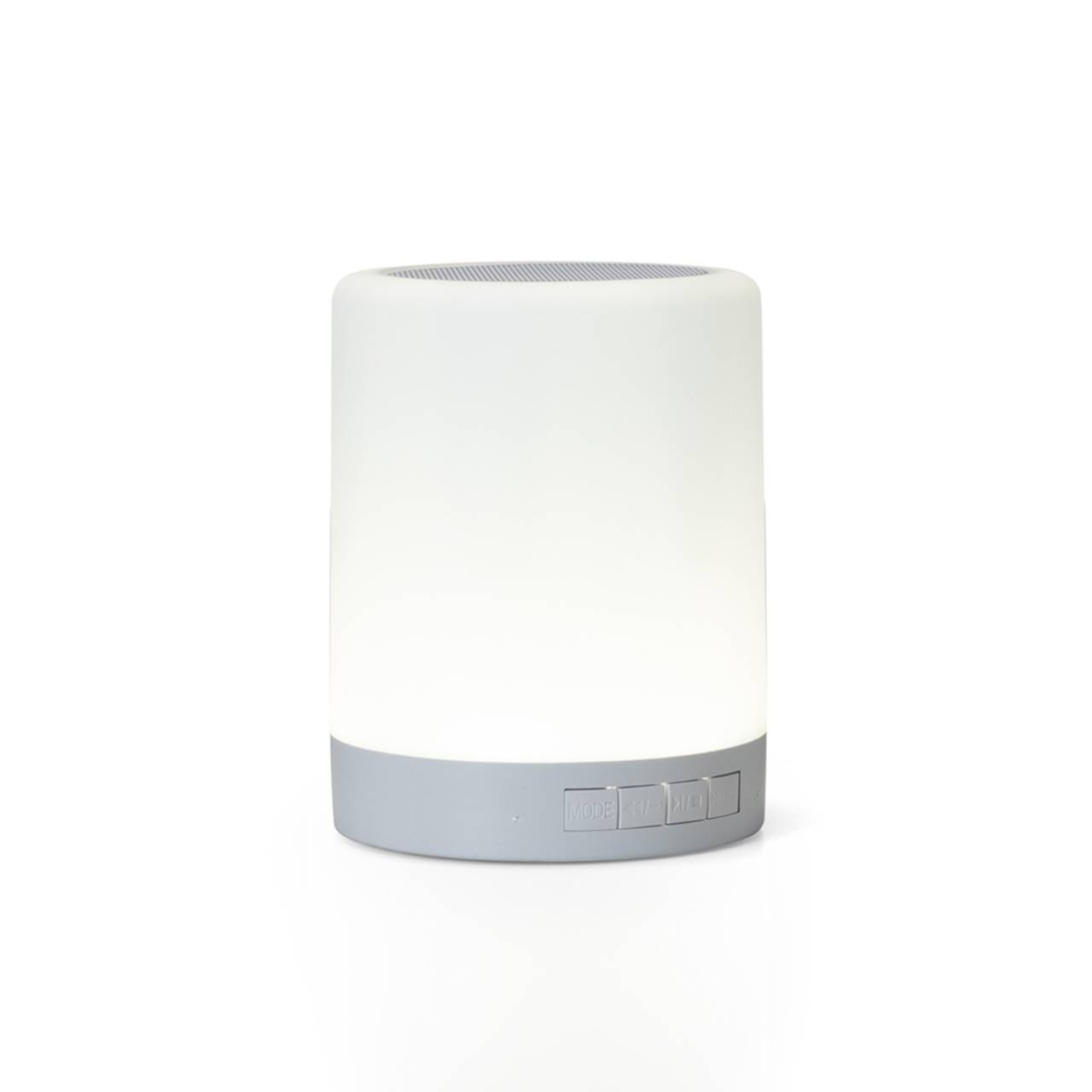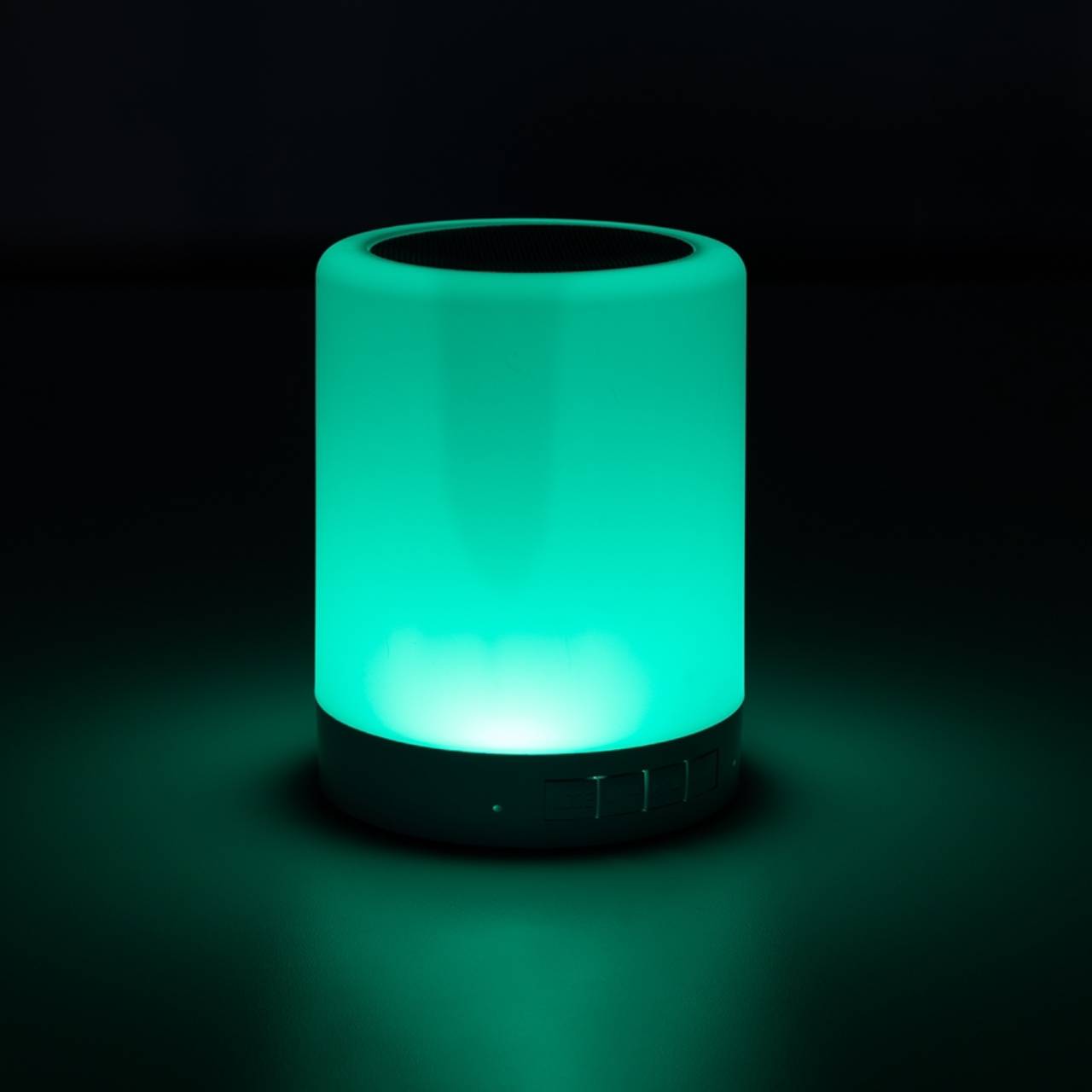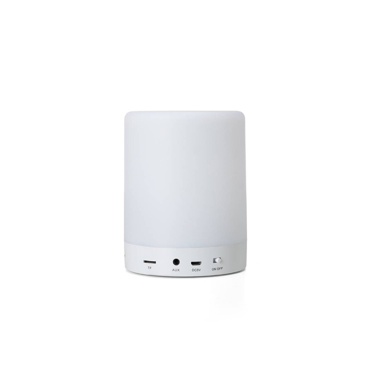 Descrição: Caixa de som multimídia com luzes. Material plástico resistente na cor branca fosca, parte superior com falante e sensor touch para troca de luzes. Parte inferior branca leitosa, base com EVA antideslizante e alça de alumínio para transporte. A caixinha executa nos modos Bluetooth, rádio FM, auxiliar e cartão TF (MicroSD). Acompanha cabo USB e cabo Auxiliar (P2).