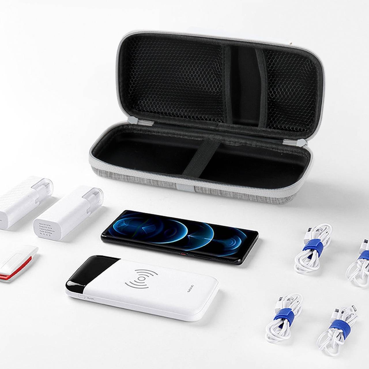Descrição: Estojo de proteção para eletrônicos, feito em nylon resistente à água. Contém bolsos telados e elásticos para fixação na área interna e externa.