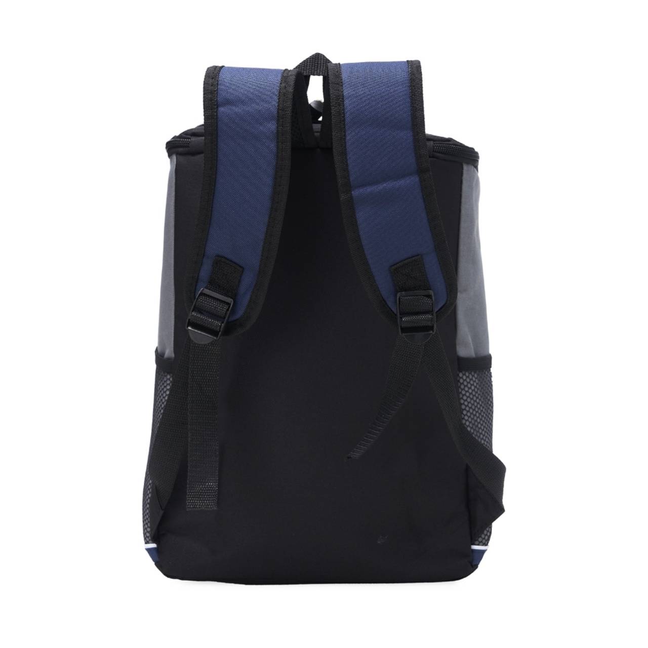 Descrição: Bolsa térmica de poliéster com dois compartimentos, capacidade de 18 litros. A bolsa possui revestimento térmico em PEVA atóxico, bolsos laterais telados, alça de mão e alça para as costas com revestimento espumado.