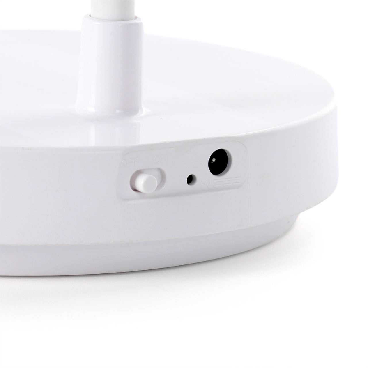Descrição: Luminária articulável em led recarregável e funcionamento touch, material plástico. Contém três estágios de iluminação com regulagem de intensidade touch: luz fria (branca), luz quente (amarela) e luz mista (branca e amarela). Base com botão para ligar e desligar. Acompanha uma bateria de lítio e cabo USB para carregamento.