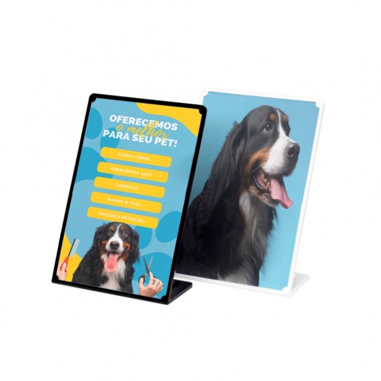 Descrição: Expositor porta retrato A4 feito em poliestireno com placa acrílica.