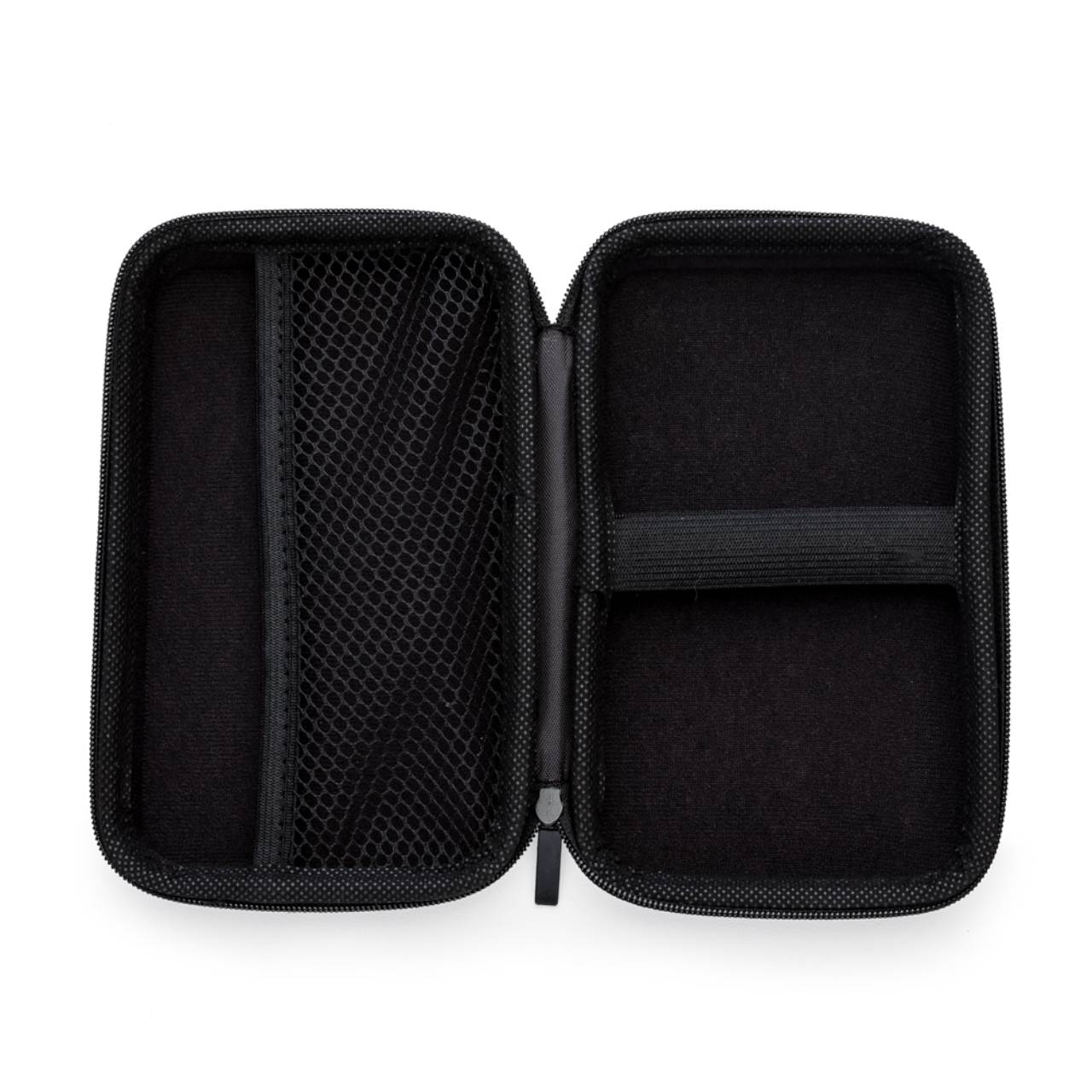 Descrição: Estojo couro sintético com zíper, possui rede interna e elástico de nylon. Case utilizada para montar kits tecnológicos.
