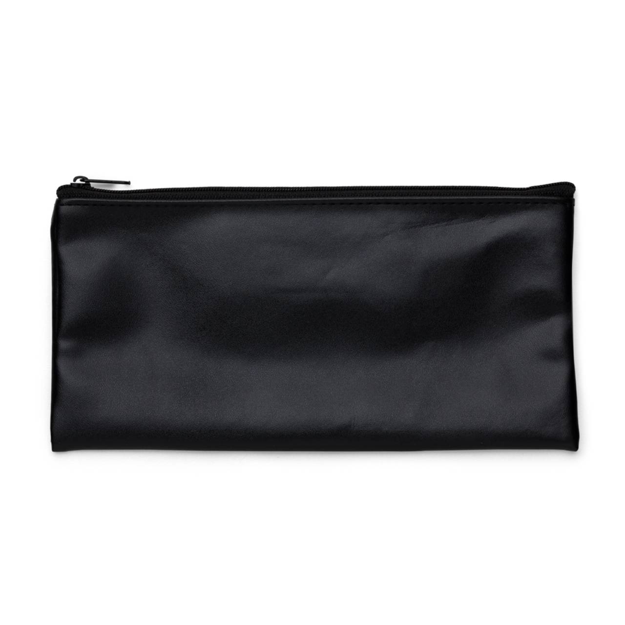 Descrição: Carteira couro sintético com calculadora solar de 8 dígitos. Carteira preta com detalhes prata na calculadora e botões impressos na capa em branco, possui zíper.