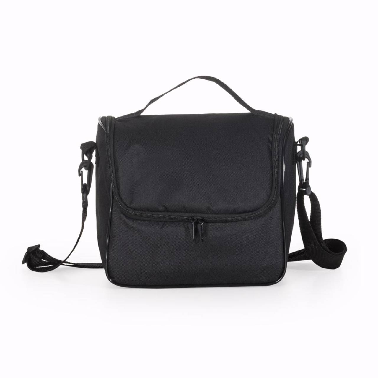 Descrição: Bolsa térmica 8,5 litros com material externo de nylon. Abertura frontal, possui dois encaixes nas laterais para gancho, alça superior e acompanha plaquinha para personalização.