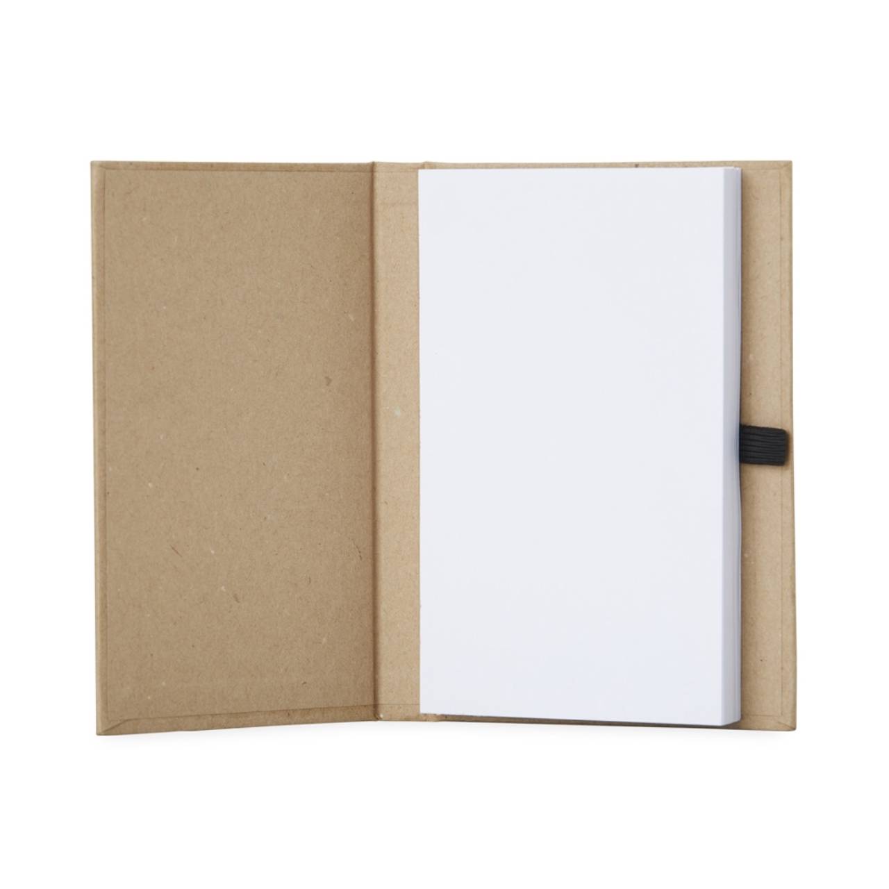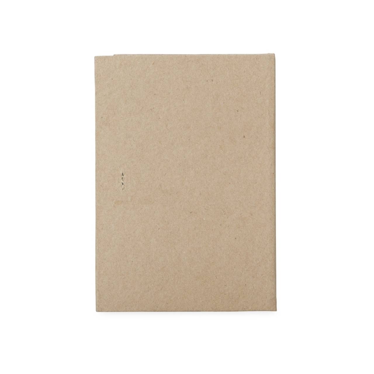 Descrição: Bloco de anotações capa dura em kraft com porta caneta e wire-o. Contém aproximadamente 100 páginas não pautadas na cor branca.