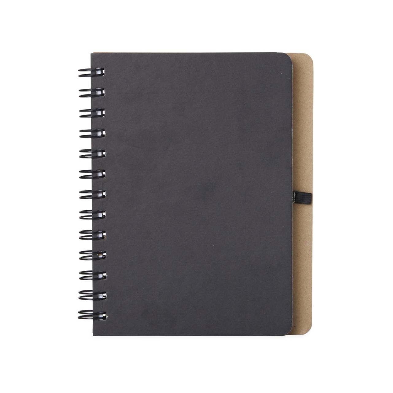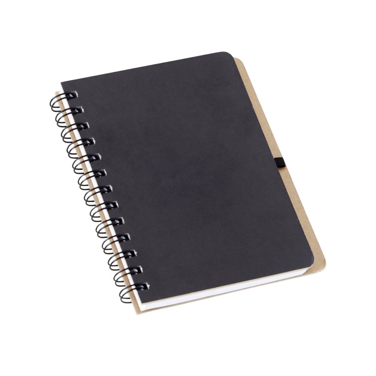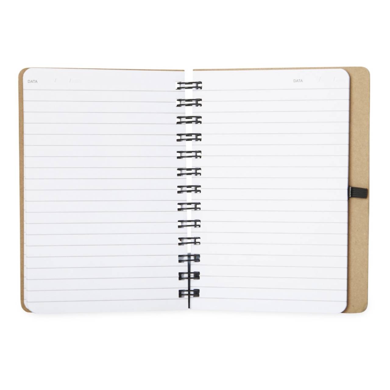 Descrição: Caderneta capa dura em kraft com wire-o e porta caneta. Contém aproximadamente 100 páginas pautadas na cor branca.