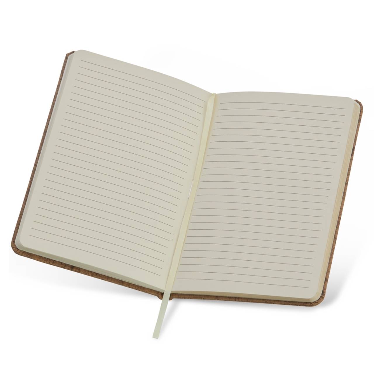 Descrição: Caderneta em cortiça, possui marca página em cetim e elástico para lacre. Contém aproximadamente 80 folhas marfim pautadas.