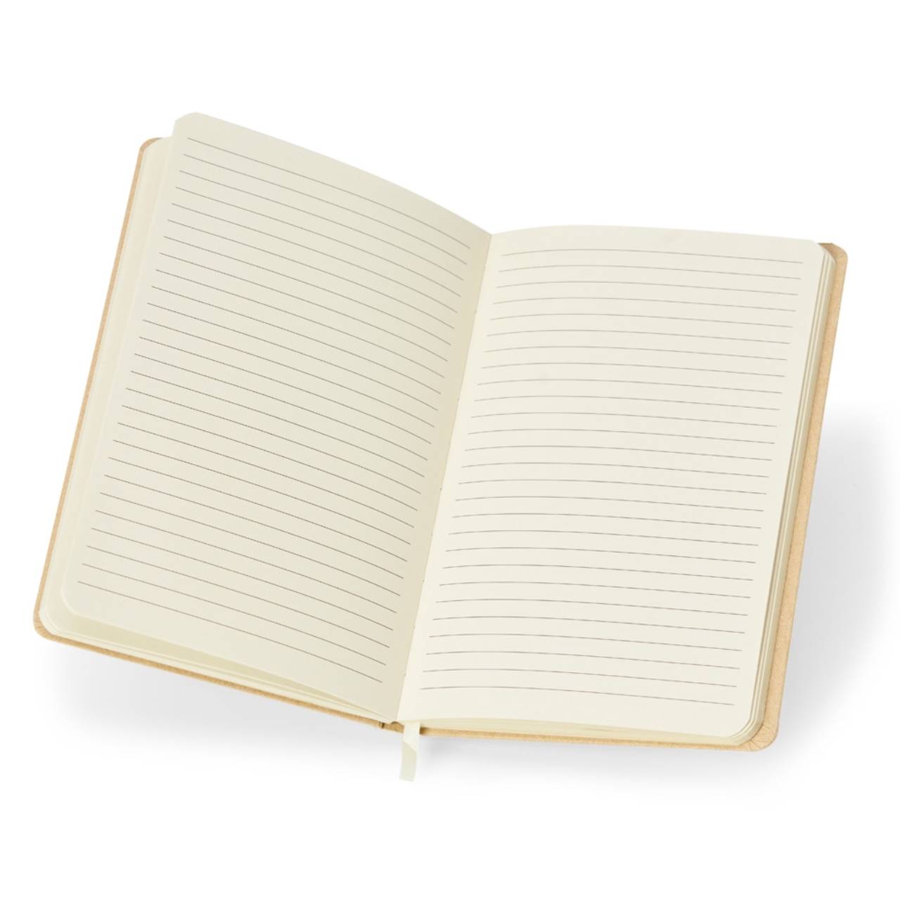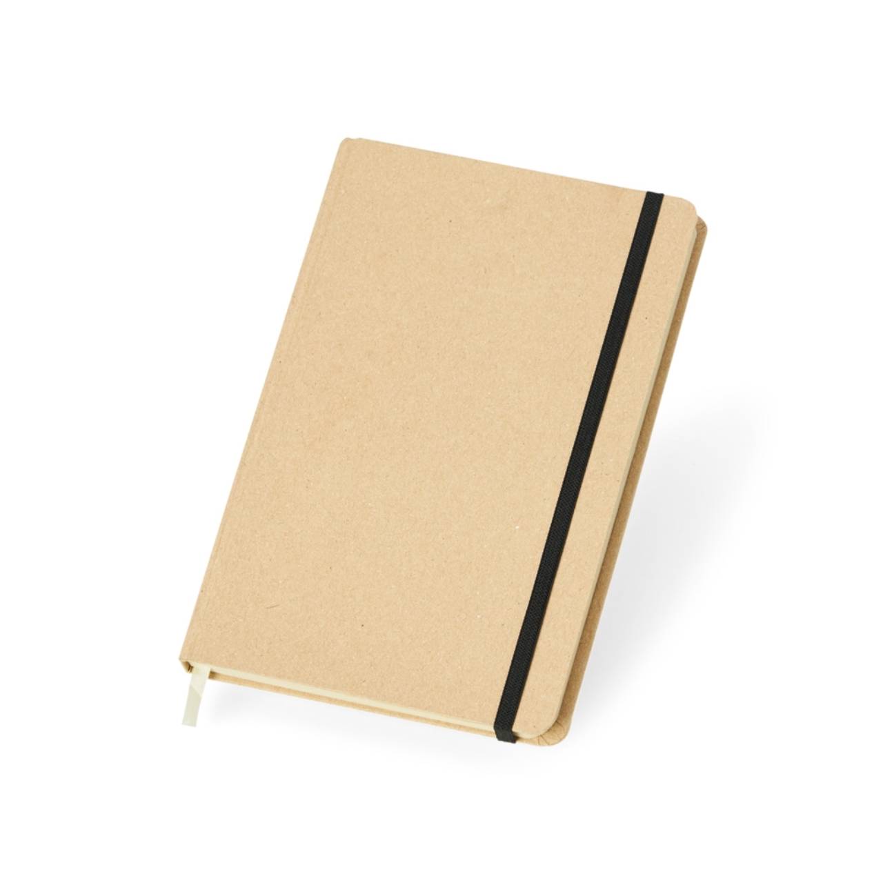 Descrição: Caderneta de kraft com marca página em cetim e elástico para lacre. Contém aproximadamente 80 folhas marfim pautadas.