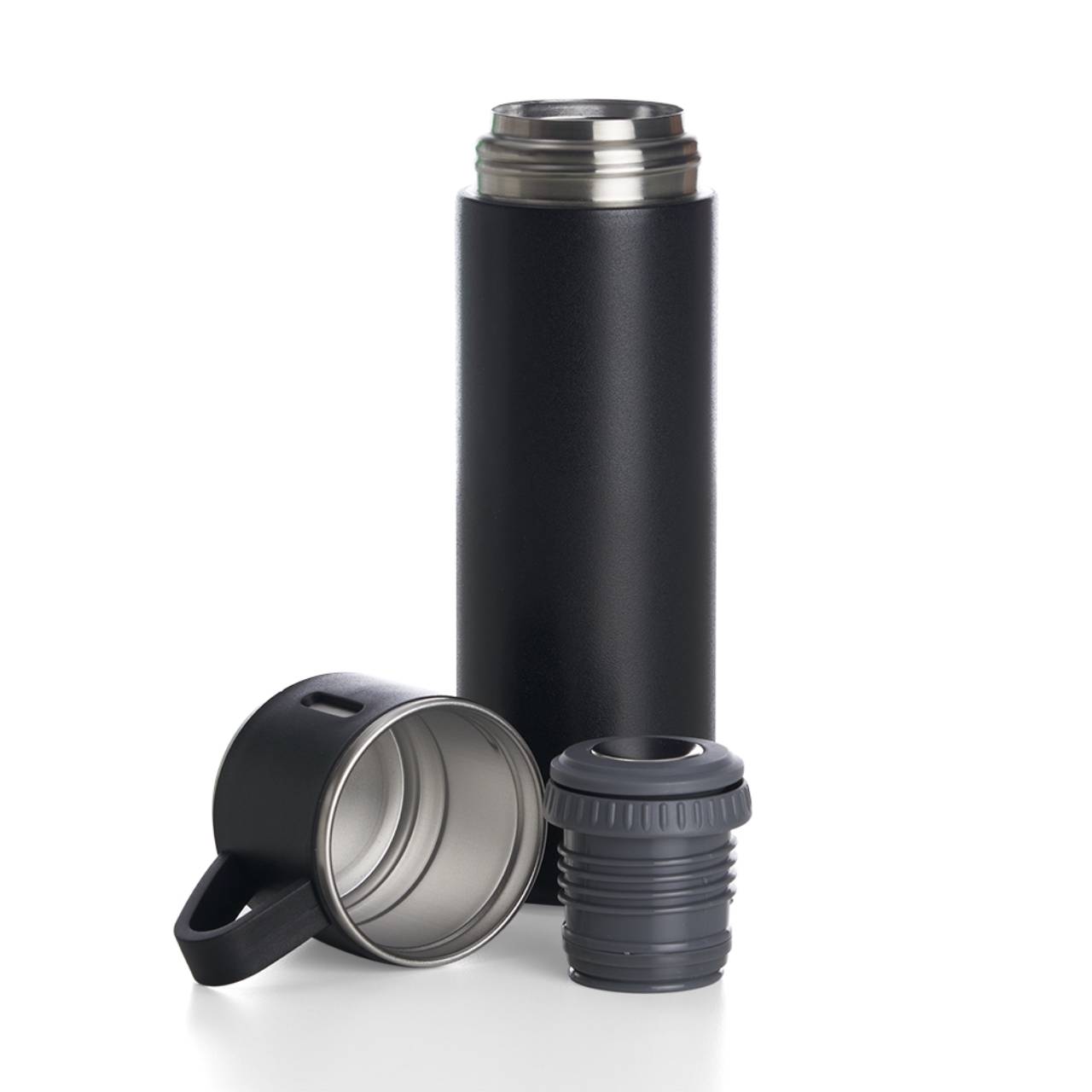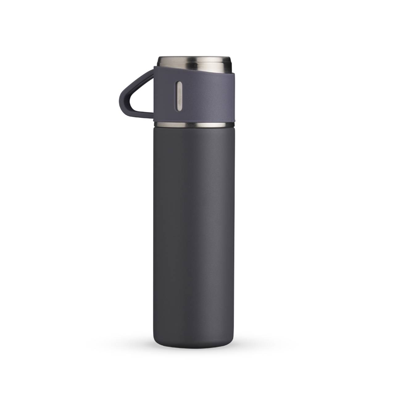 Descrição: Garrafa térmica 450ml em inox com tampa que pode ser utilizada como caneca, tampa interna em plástico resistente (basta um clique para abrir ou fechar), base com borracha antiderrapante.
