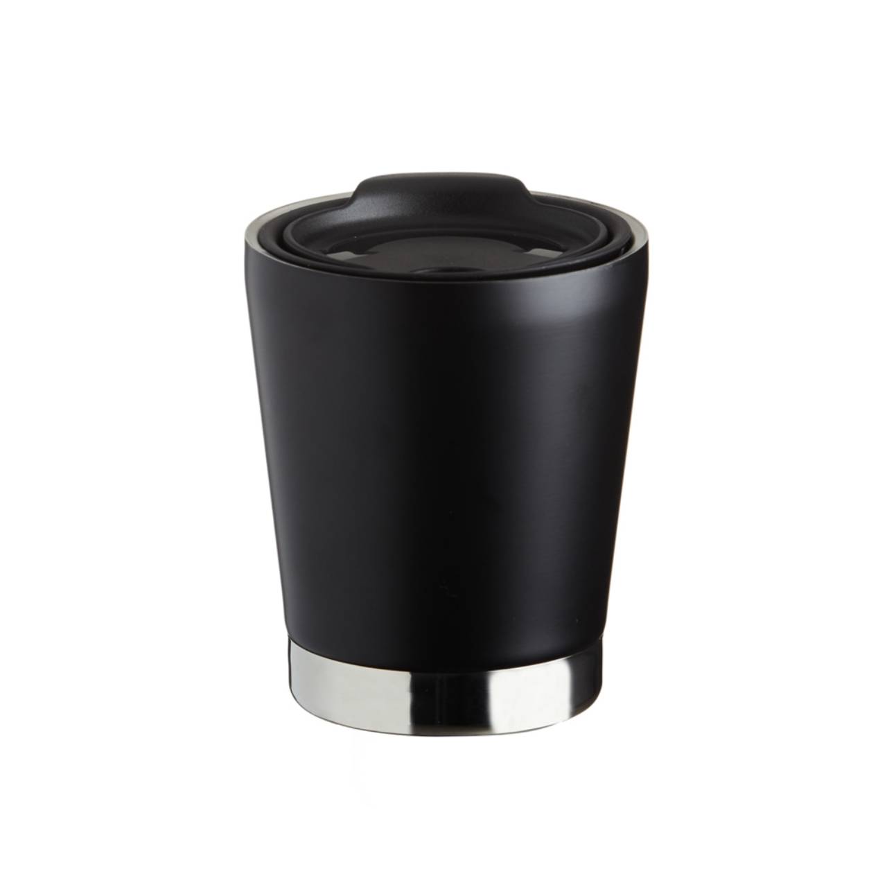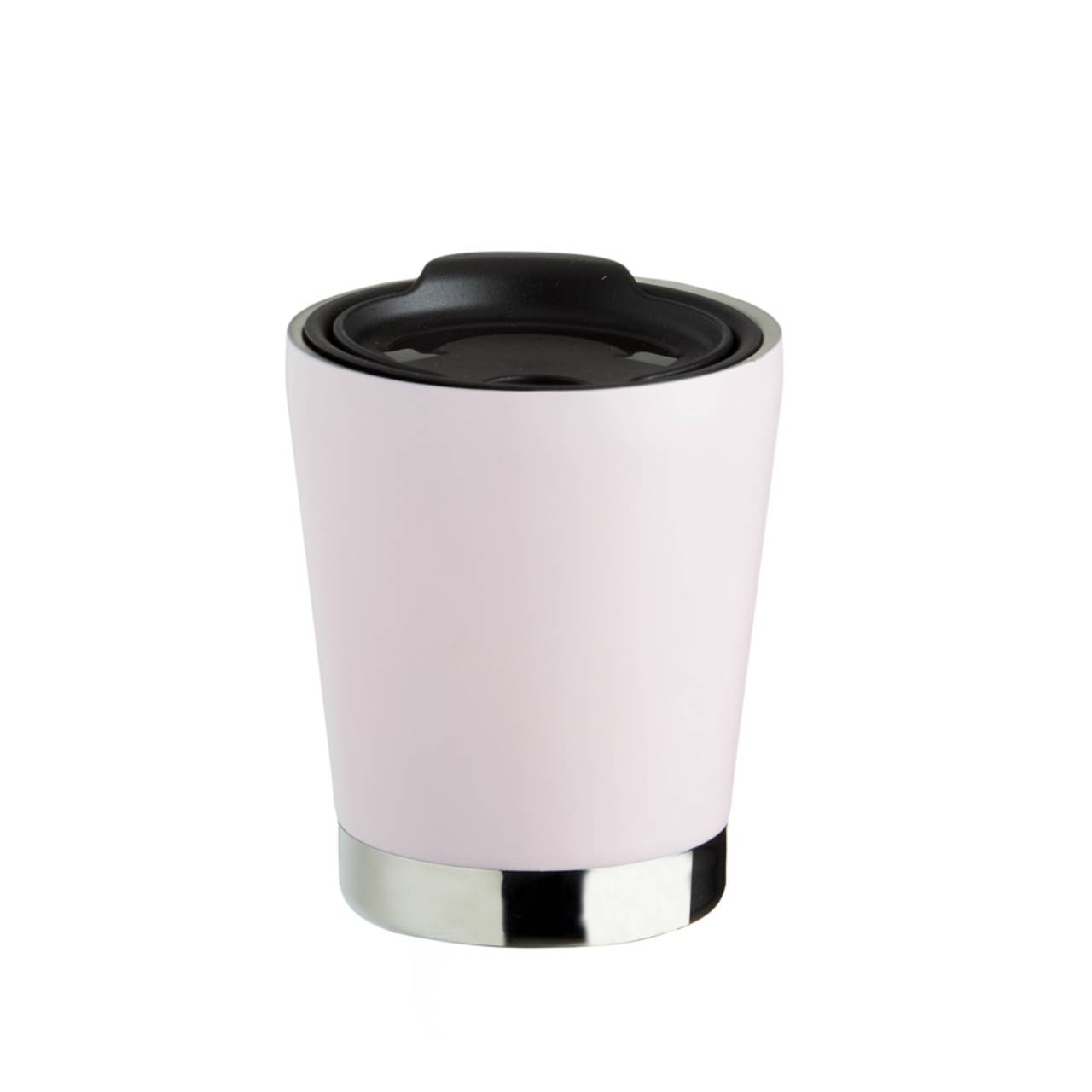 Descrição: Copo de parede dupla em inox 304 com capacidade de 300ml, possui tampa plástica de encaixe com acesso ao bocal e área para canudo (não acompanha).
