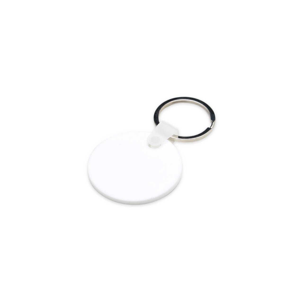 Descrição: Chaveiro de acrílico em formato redondo, frente verso e liso. Possui prendedor de plástico que conecta a argola metálica.