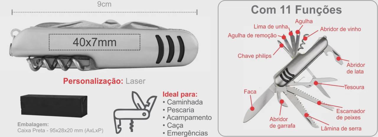 Canivete Em Aço Inox Com 11 Funções CN-00320