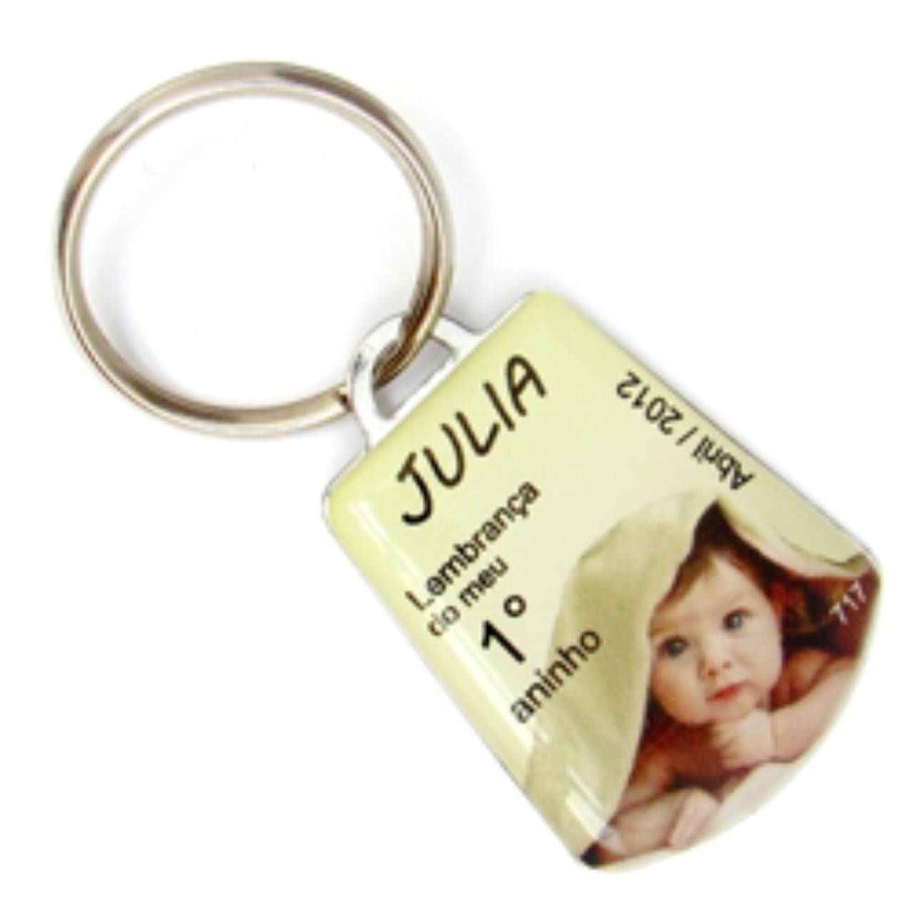 Chaveiro chapinha metálica para adição de informações.