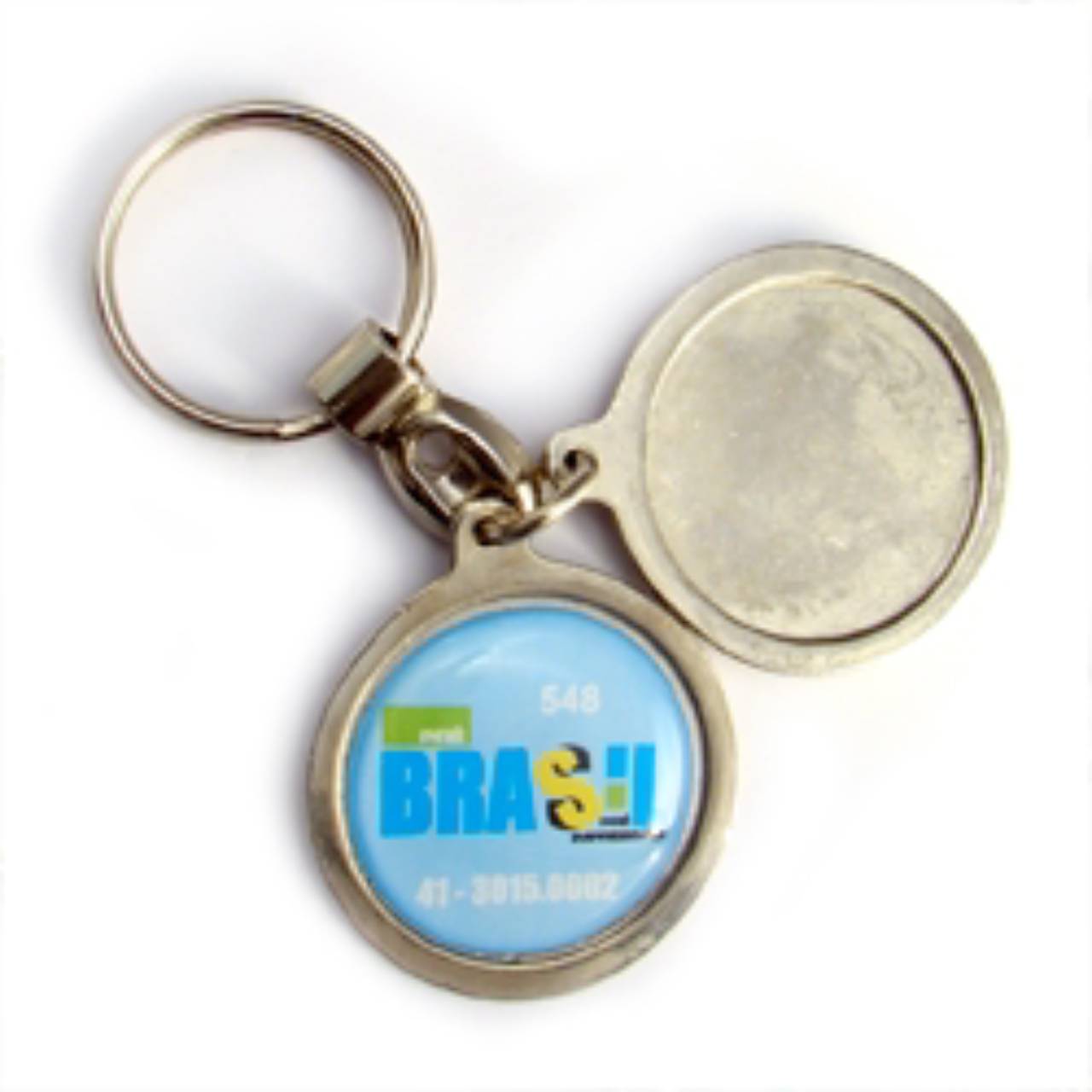 Chaveiro medalha ou pingente com Resina de 1 lado para adição de informações.