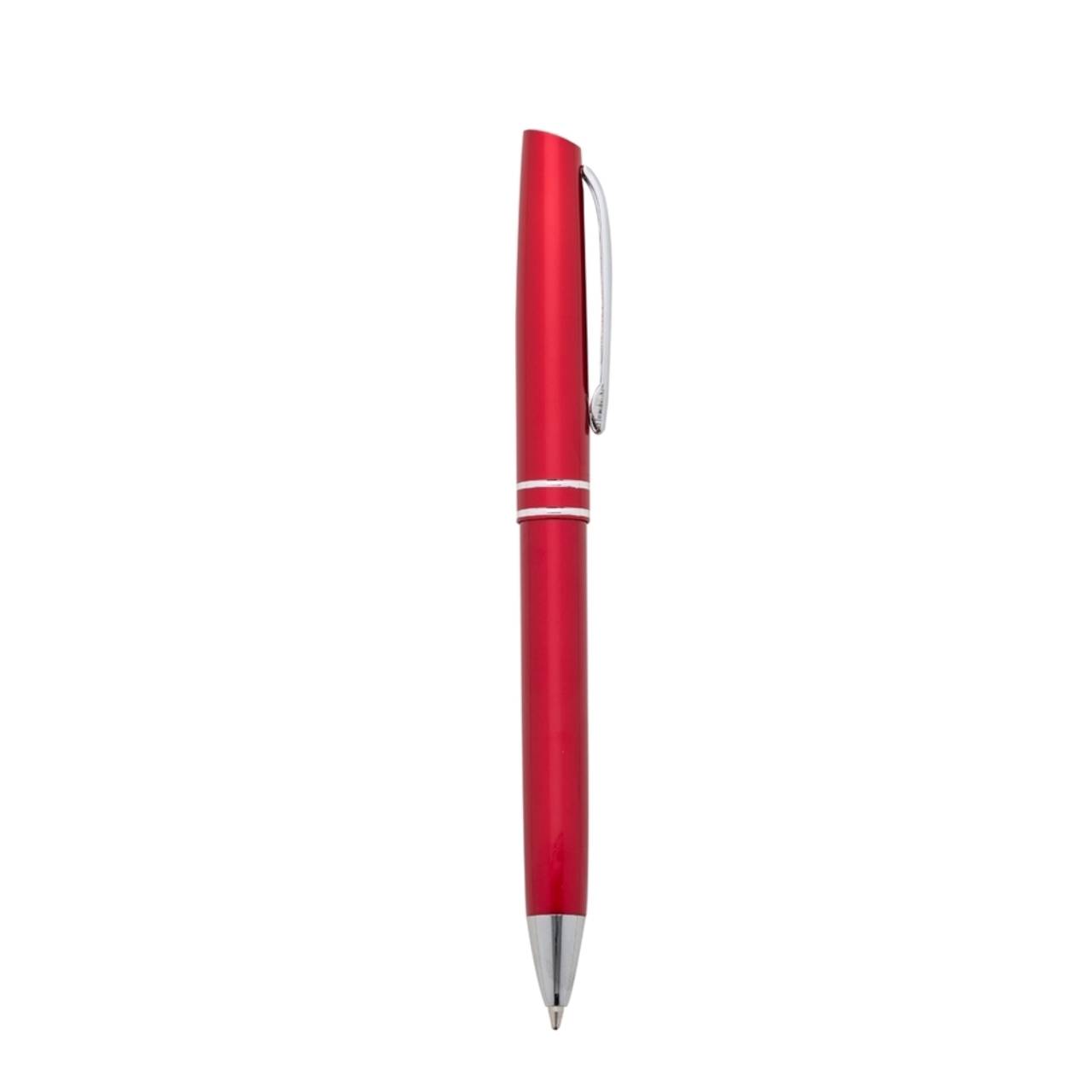 Descrição: Caneta semimetálica, carga esferográfica azul e acionamento por clique.