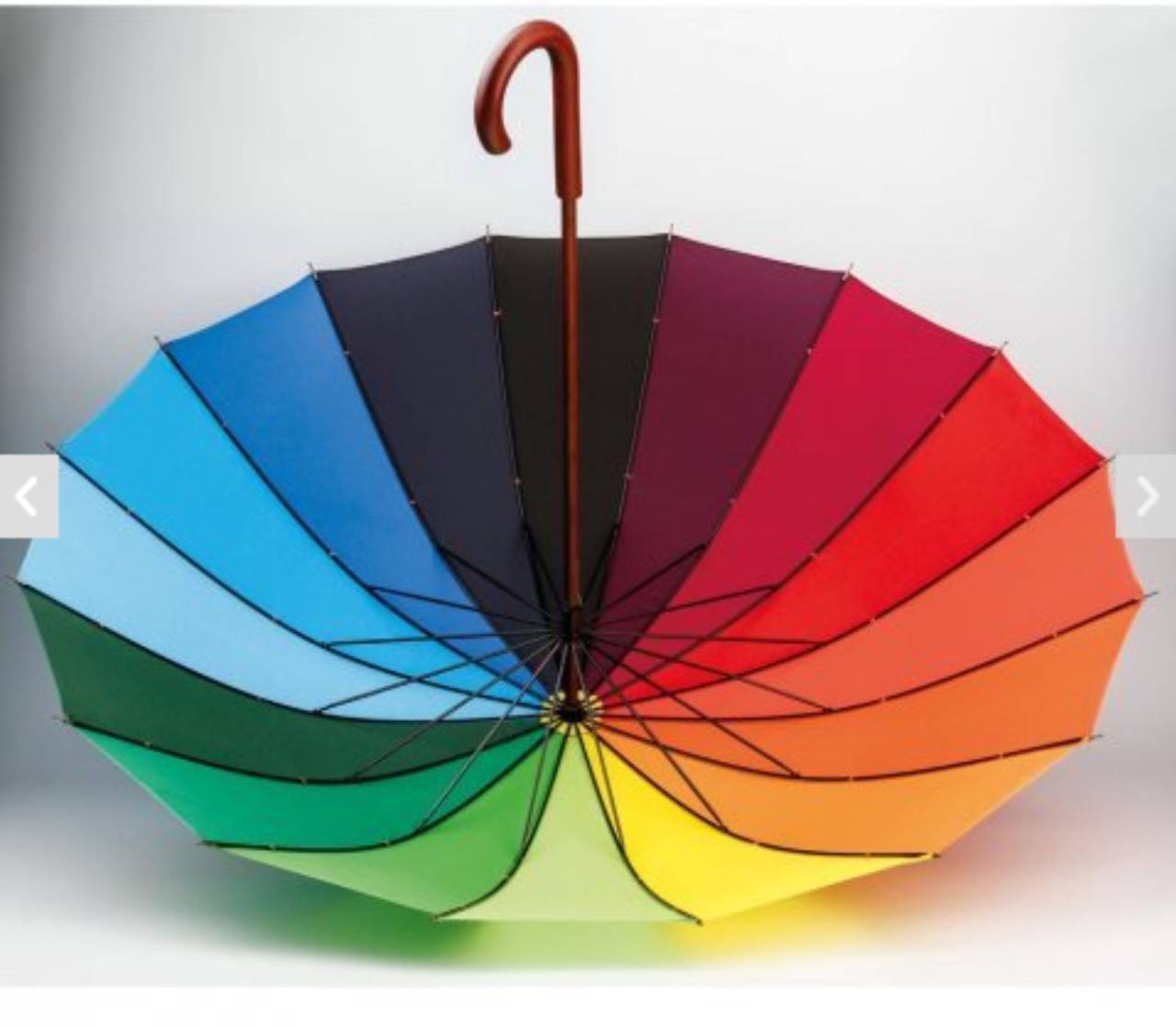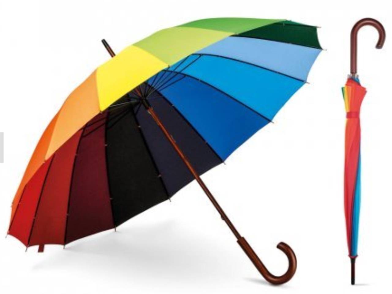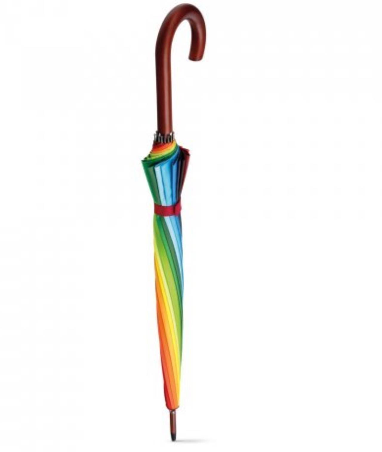 Guarda-chuva arco-íris em 190T pongee com 16 varetas e pega em madeira. ø1020 x 875 mm