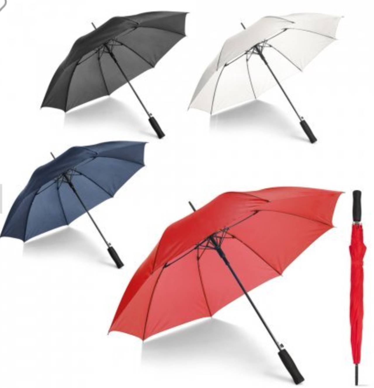 Guarda-chuva grande de portaria em 190T pongee com abertura automática. Varetas e haste em fibra de vidro e pega em madeira. ø1040 mm | 830 mm