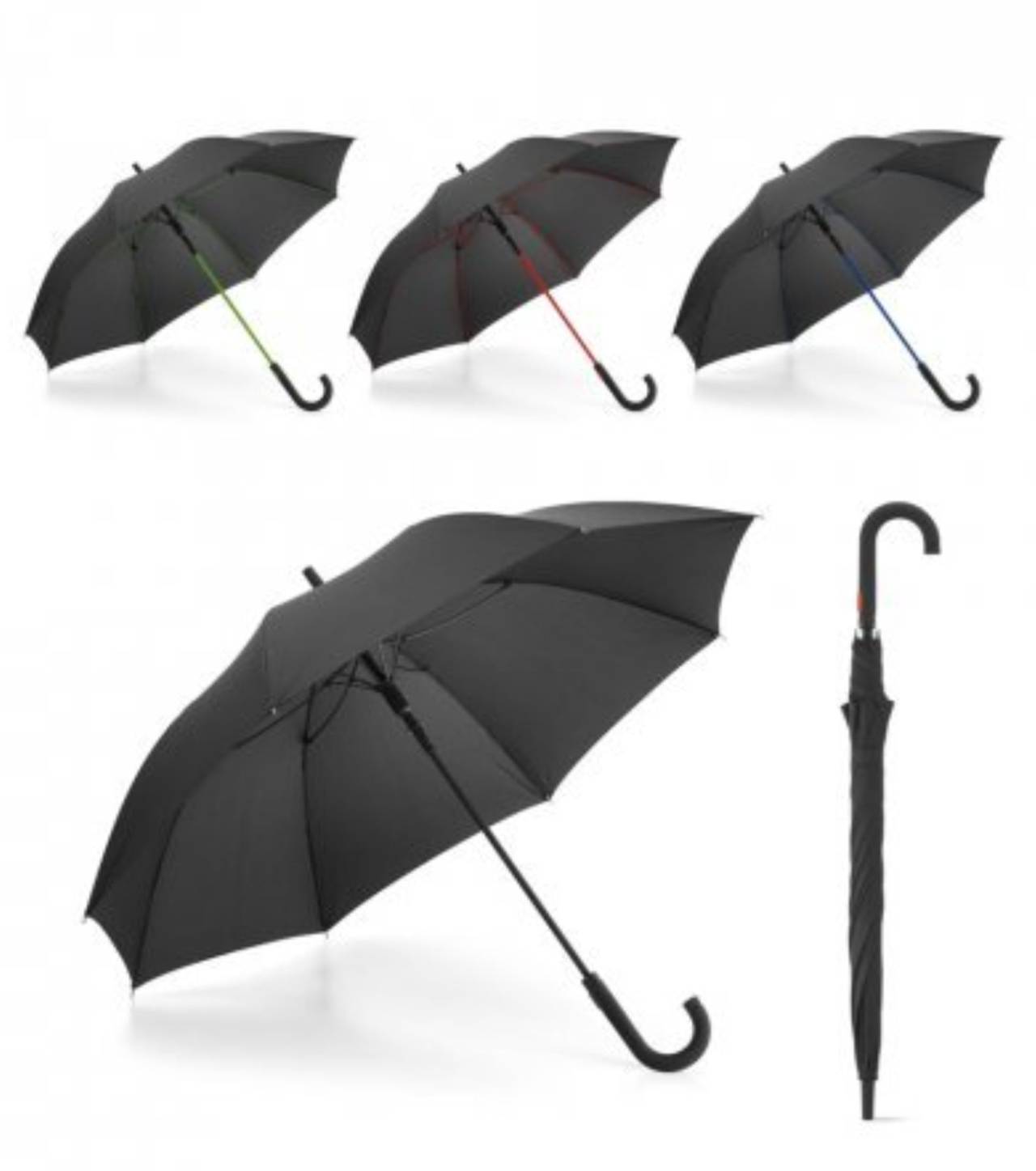 Guarda-chuva em pongee 190T com varetas em fibra de vidro coloridas e pega revestida a borracha. Abertura automática. ø1040 mm | 870 mm