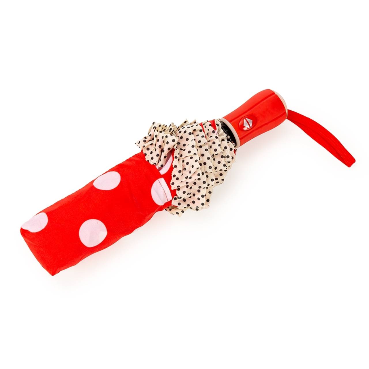 Descrição: Guarda-chuva de poliéster com acionamento de botão, possui estrutura metálica com 8 varetas e pegador plástico com cordão de nylon. Acompanha capa protetora. OBS.: PEÇAS SORTIDAS.