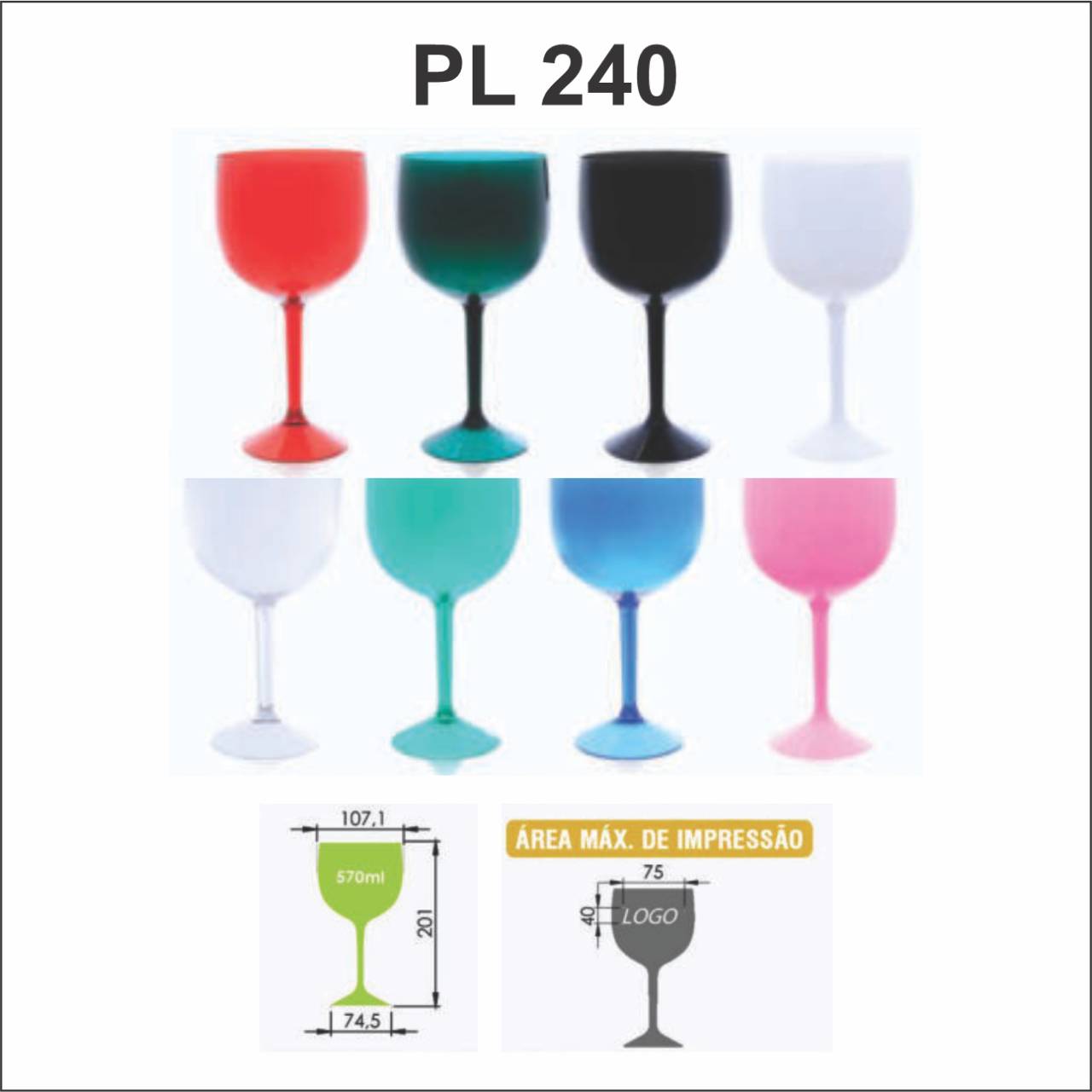 Fabricado em poliestireno PS Cristal;