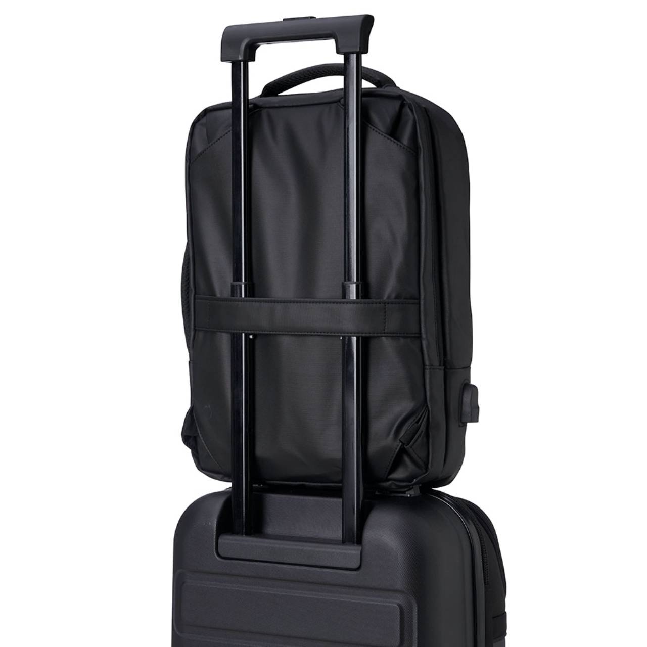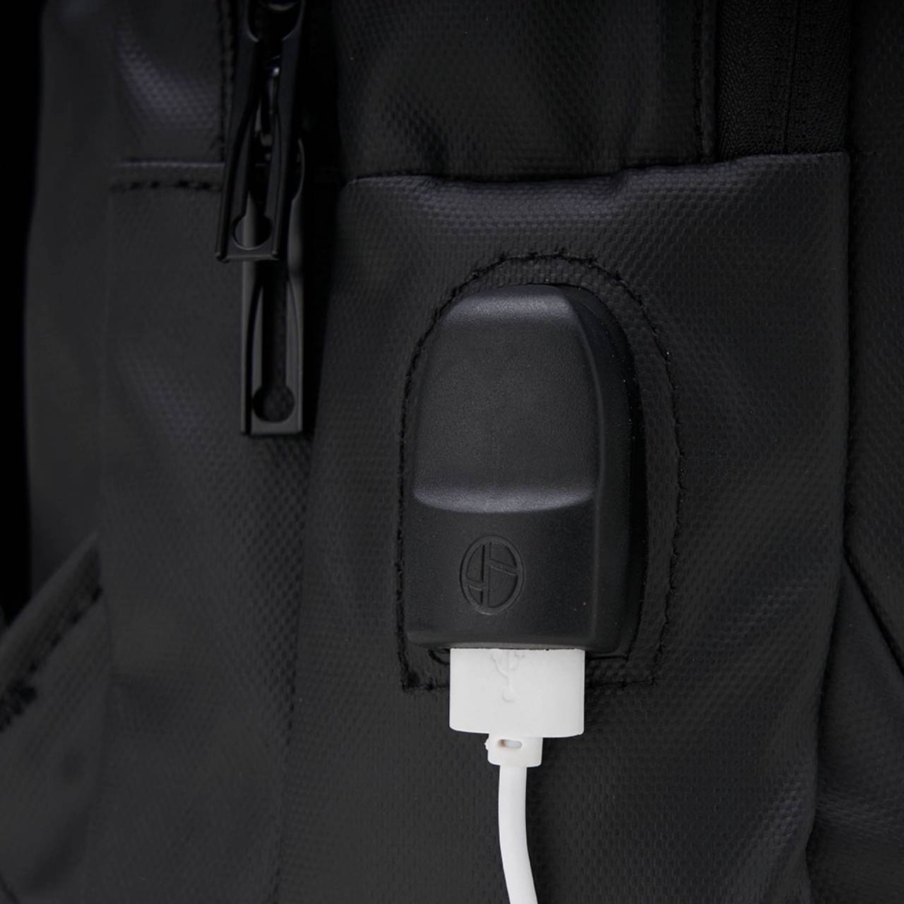 Descrição: Mochila em couro sintético 17 litros resistente à água com cinco compartimentos, sendo o principal com bolso para notebook 156. Com divisórias internas para acessórios, a mochila possui suporte externo usb, alça para encaixe em malas de viagem e duas alças de mãos, sendo uma delas lateral para o transporte da mochila no modo pasta.