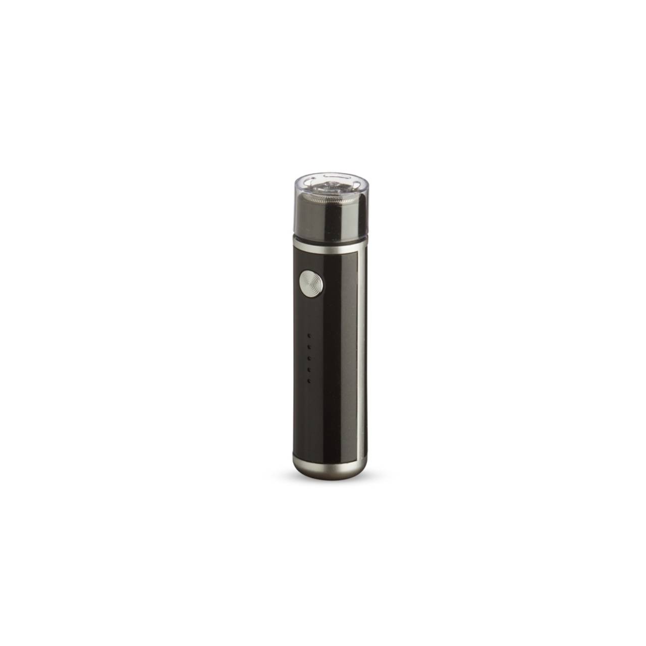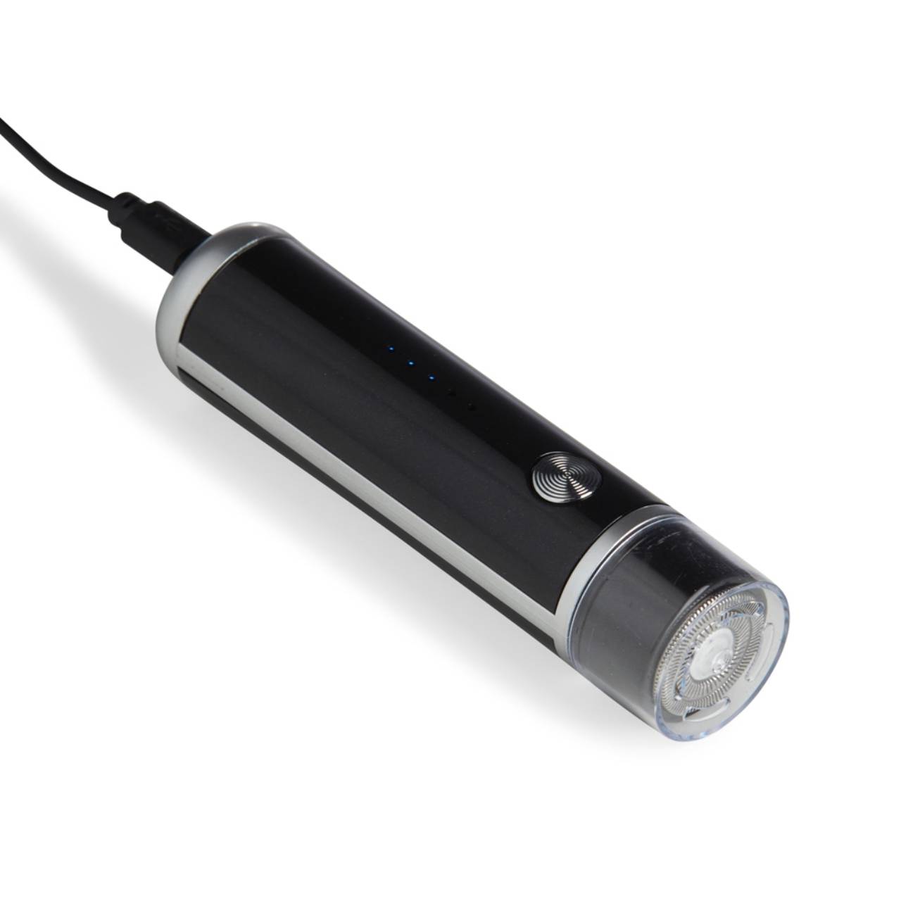 Descrição: Aparador de barba elétrico recarregável. Possui status da bateria visível e botão antiderrapante para uma maior aderência ao toque. Acompanha cabo USB Tipo-C, escovinha para limpeza e tampa protetora.