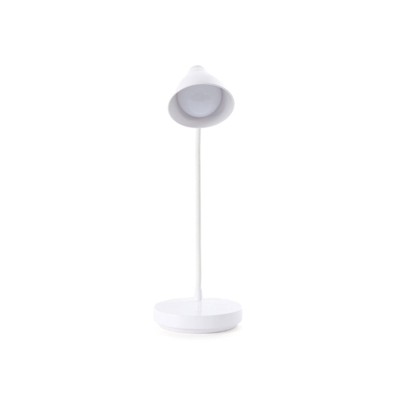 Descrição: Luminária articulável em led recarregável e funcionamento touch, material plástico. Contém três estágios de iluminação com regulagem de intensidade touch: luz fria (branca), luz quente (amarela) e luz mista (branca e amarela). Base com botão para ligar e desligar. Acompanha uma bateria de lítio e cabo USB para carregamento.