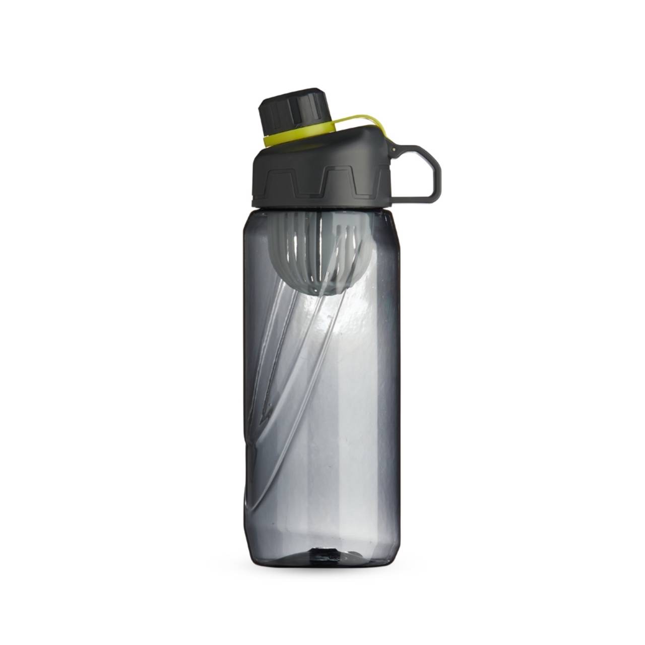 Descrição: Squeeze plástico 800ml com infusor de bebidas. Com design em relevo, a squeeze possui tampa rosqueável com alça para transporte e tampa de proteção para o bocal.