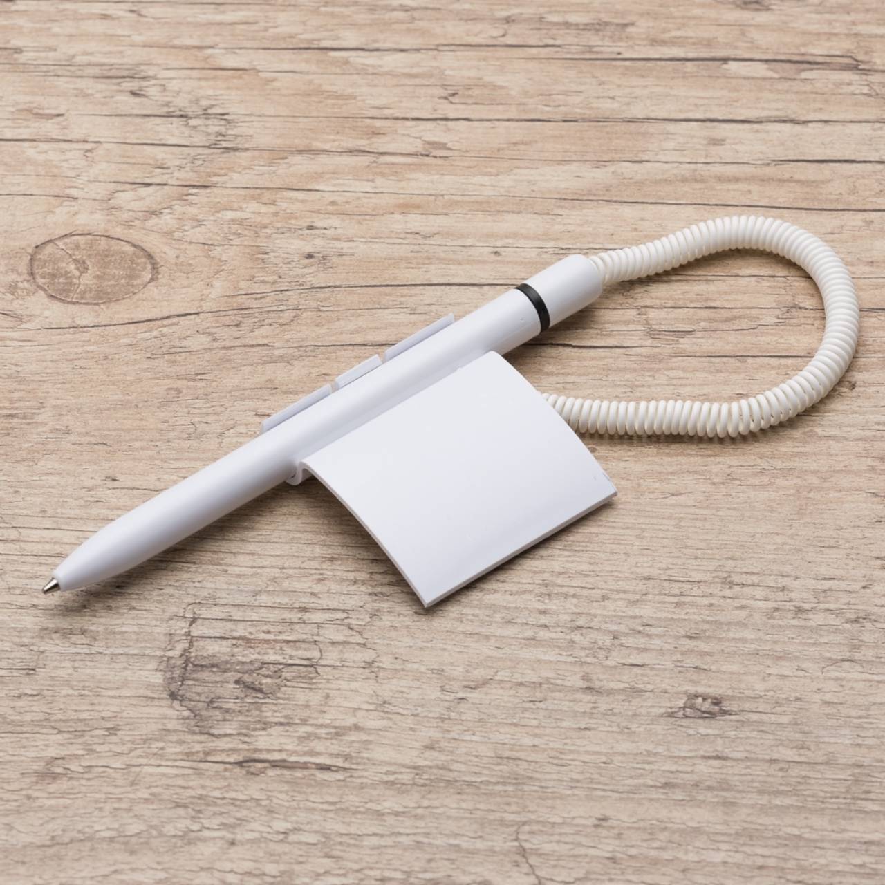 Descrição: Caneta balcão plástica com suporte e adesivo auto colante. Carga esferográfica azul. QUANTIDADE MÍNIMA DE 100 PEÇAS!