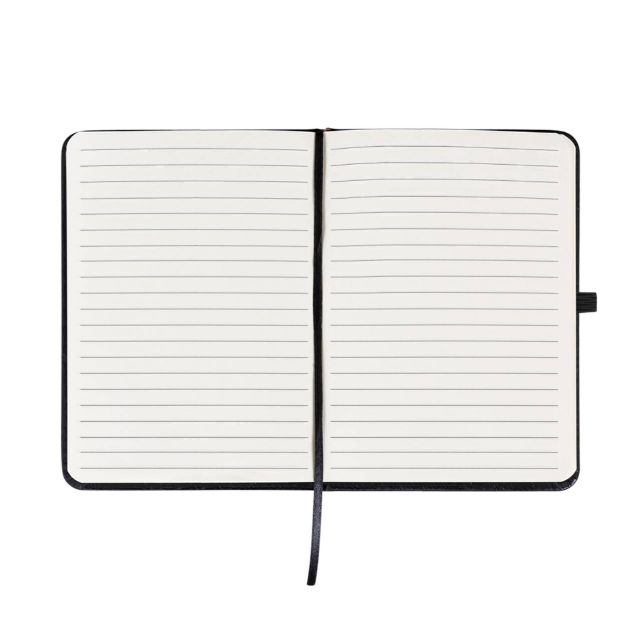 Descrição: Caderneta emborrachada com elástico para lacre, marcador de página em cetim e porta caneta, contém aproximadamente 84 folhas marfim com pauta.