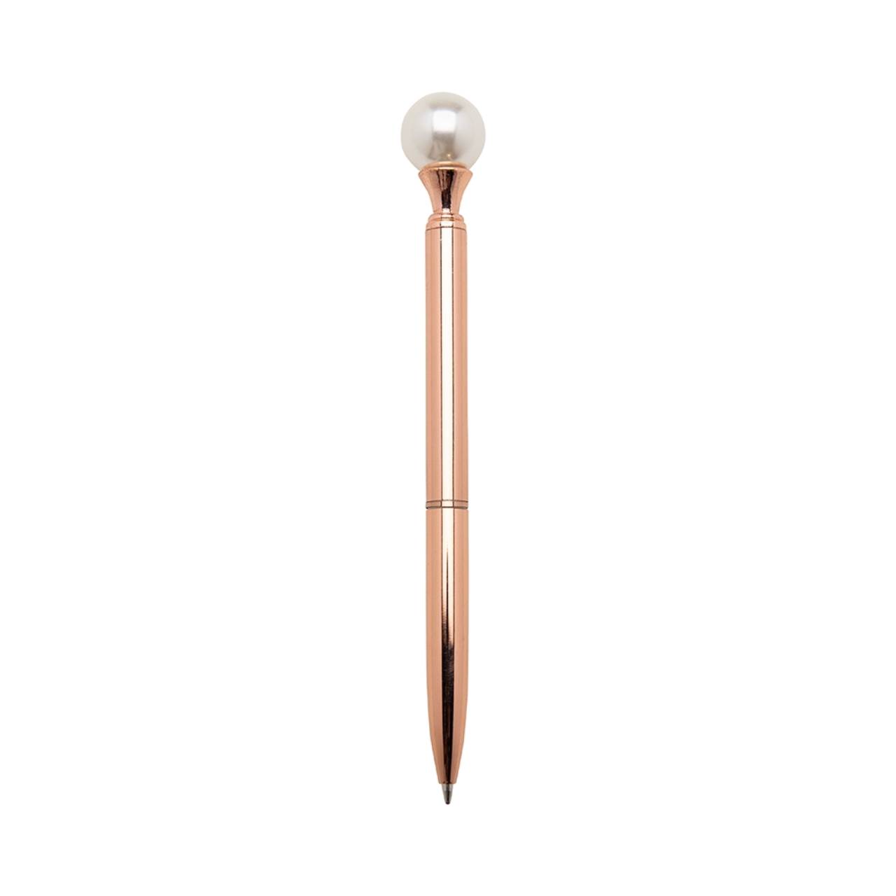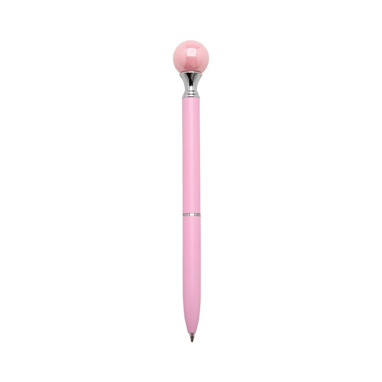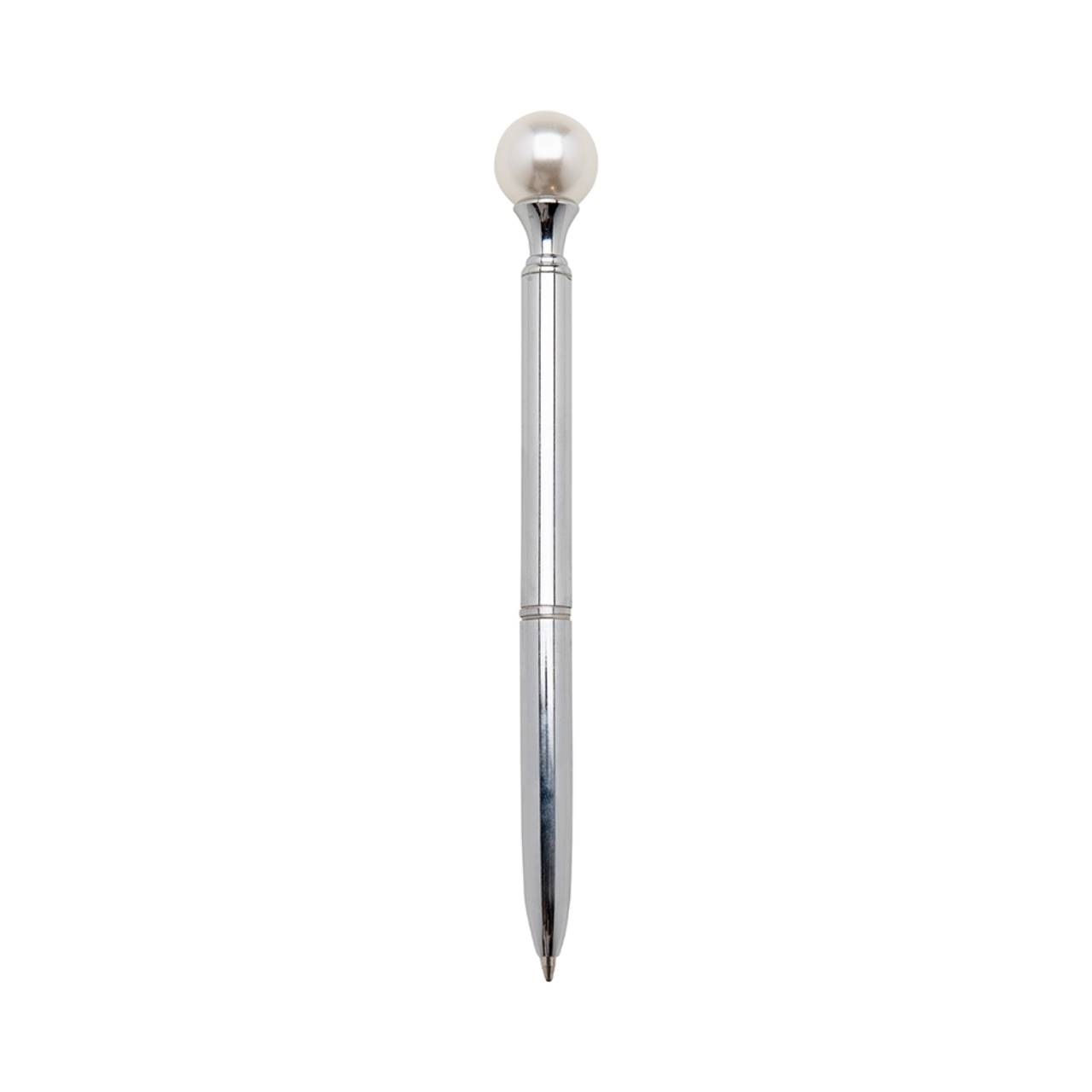 Descrição: Caneta metálica com carga esferográfica azul e acionamento por rotação.