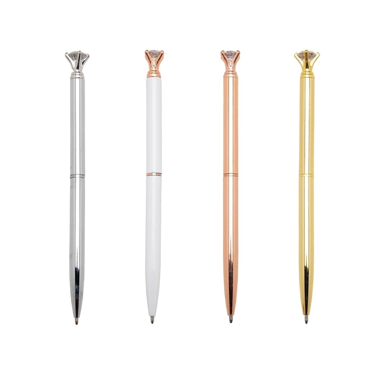 Descrição: Caneta metálica com carga esferográfica azul e acionamento por rotação.