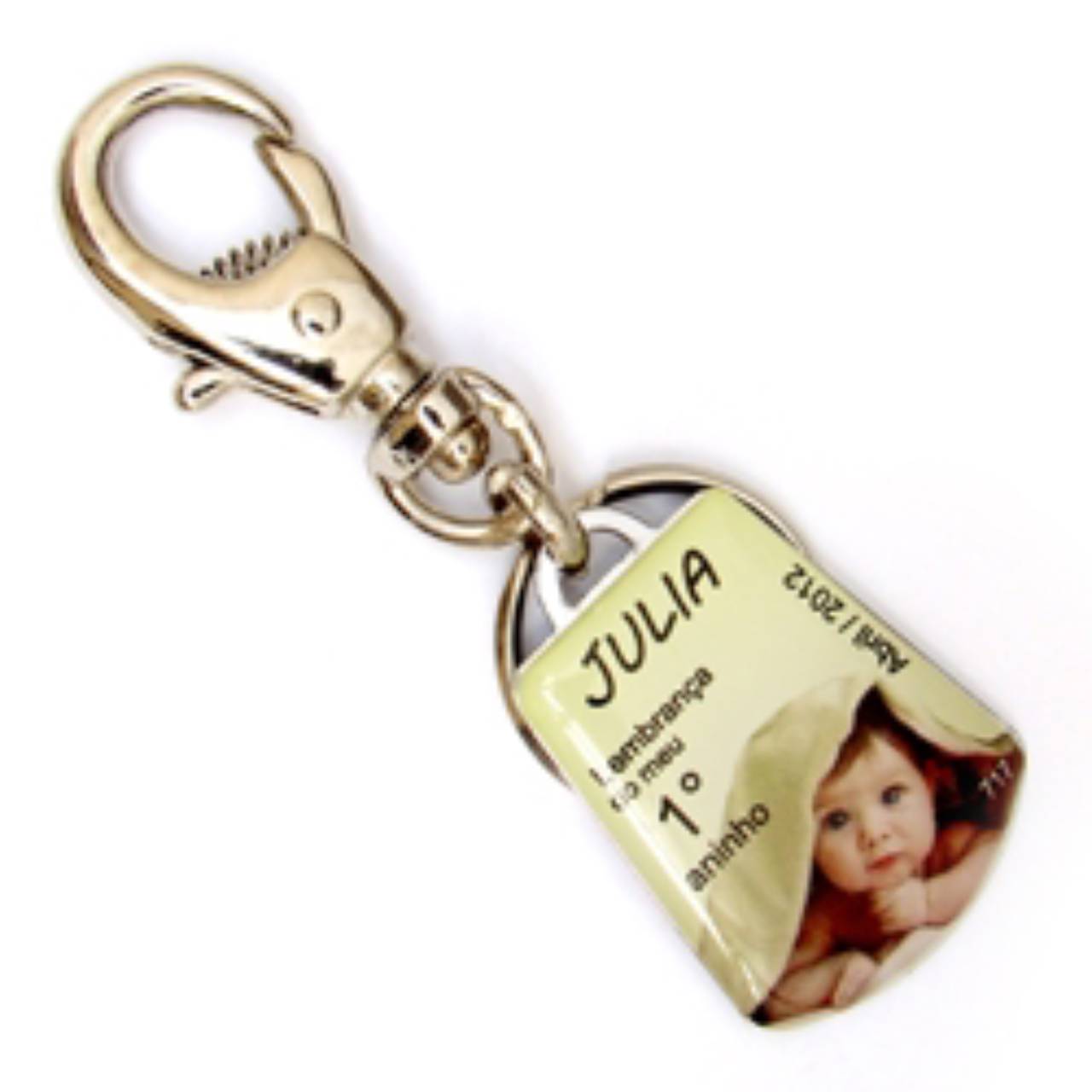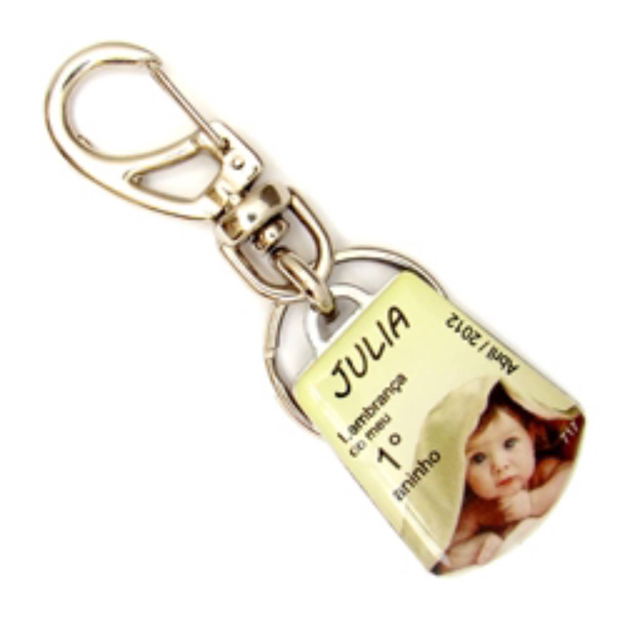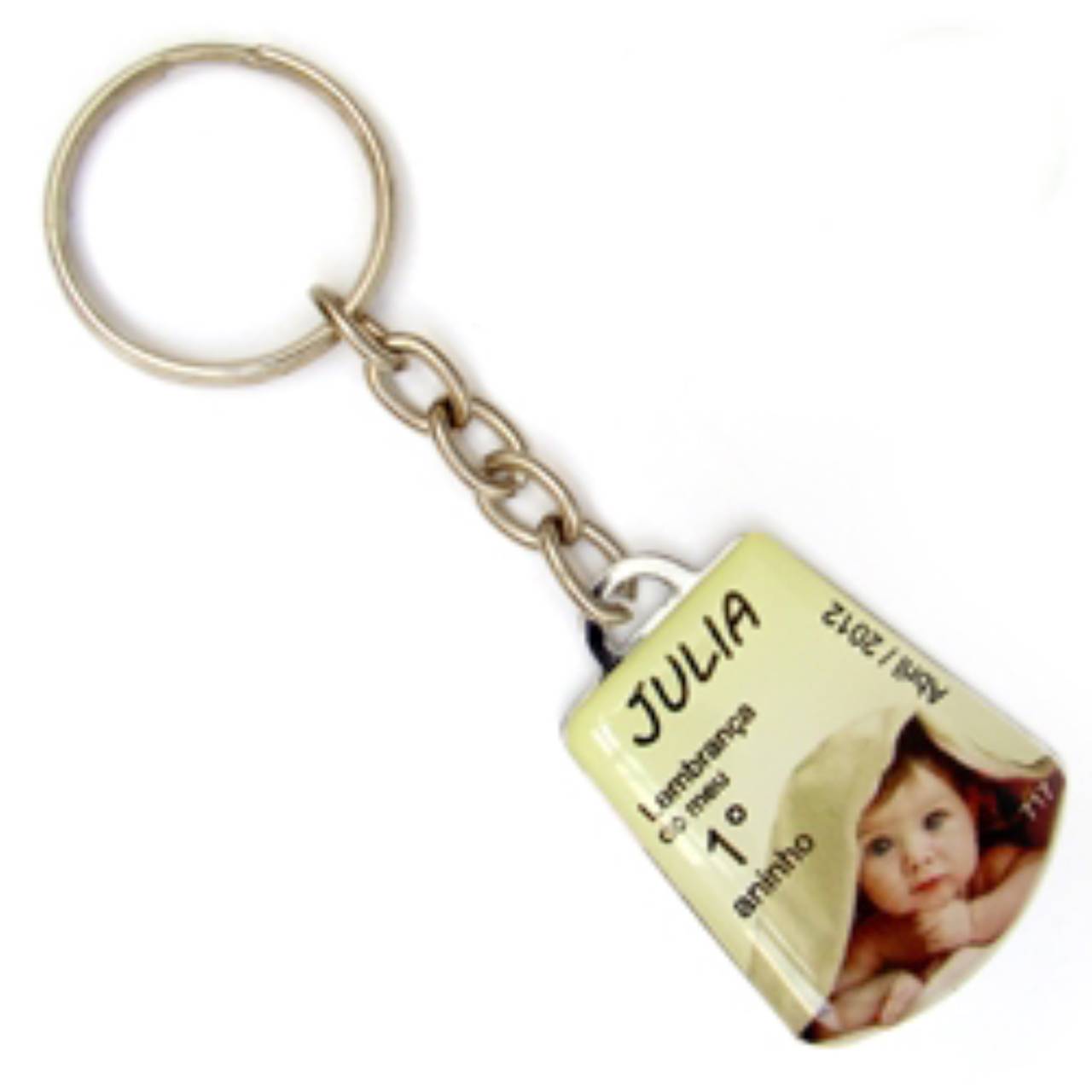 Chaveiro chapinha metálica para adição de informações.