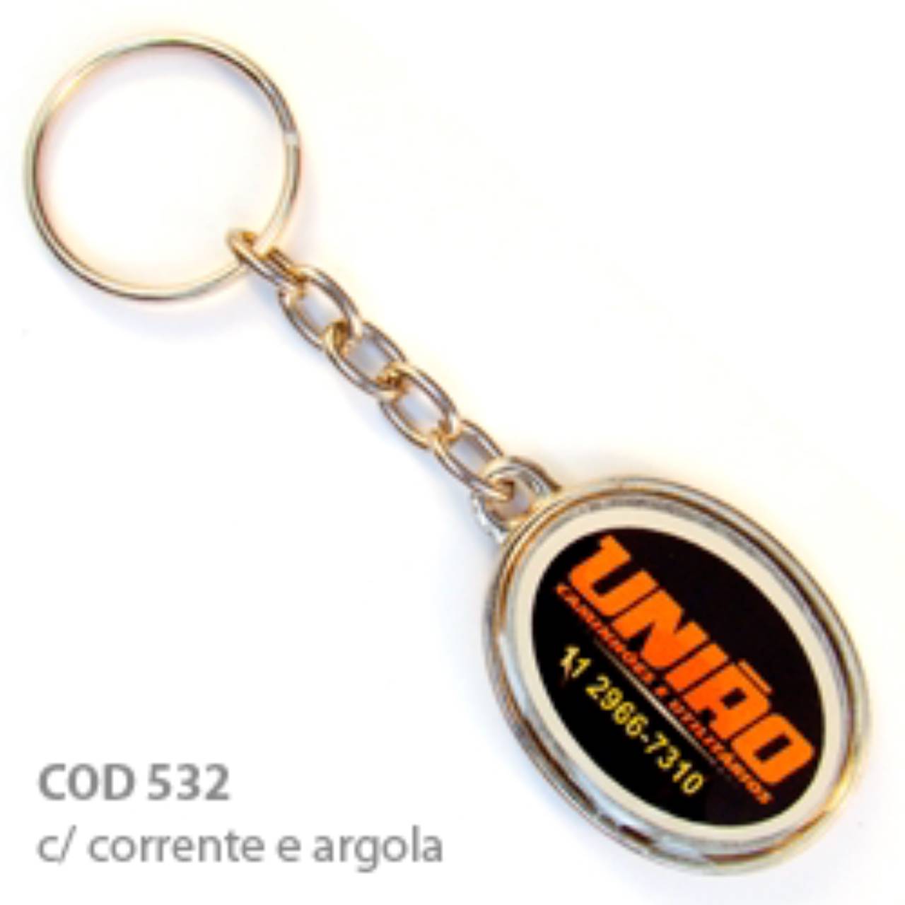 Chaveiro medalha ou pingente com Resina de 1 lado para adição de informações.