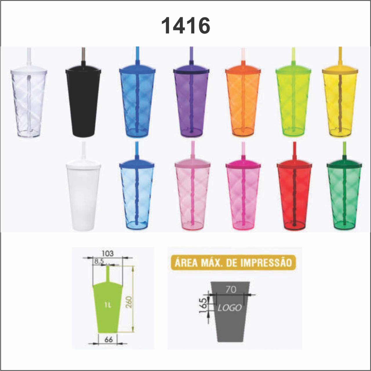 O Copão Twister 1 litro c/ canudo é uma excelente opção para personalizar e servir bebidas em geral.