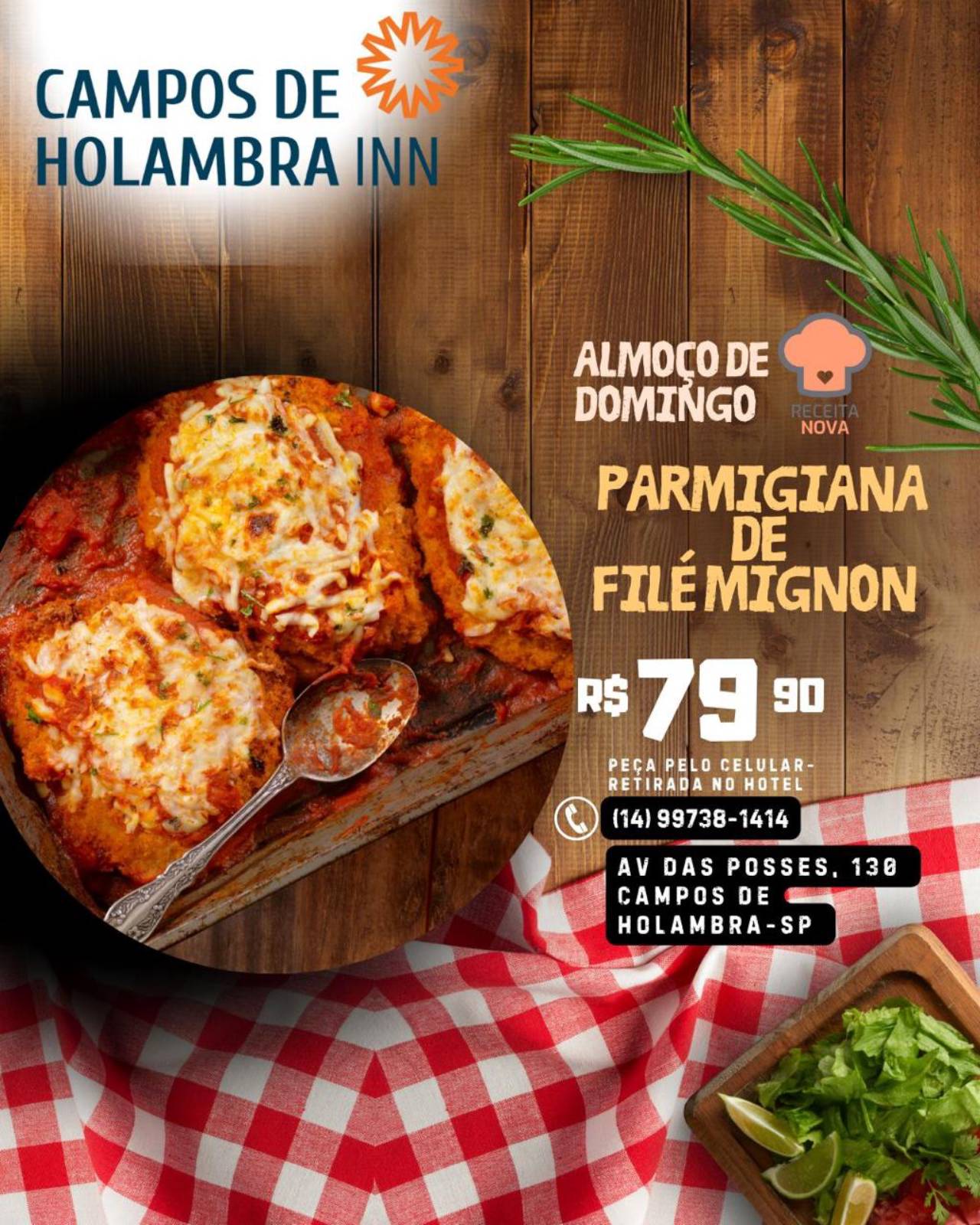 Almoço de Domingo – Parmegiana de Filé Mignon R$79,90