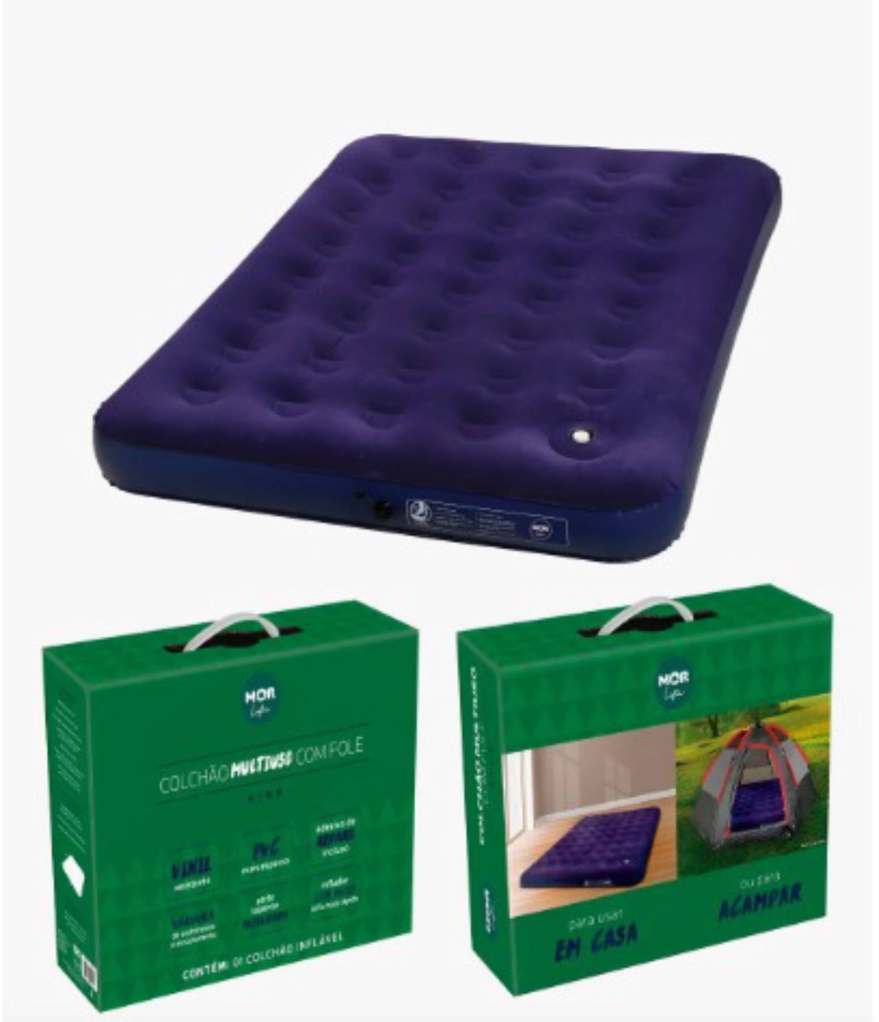 Garanta mais conforto onde você estiver com o Colchão Inflável Mor Multuso com Fole.