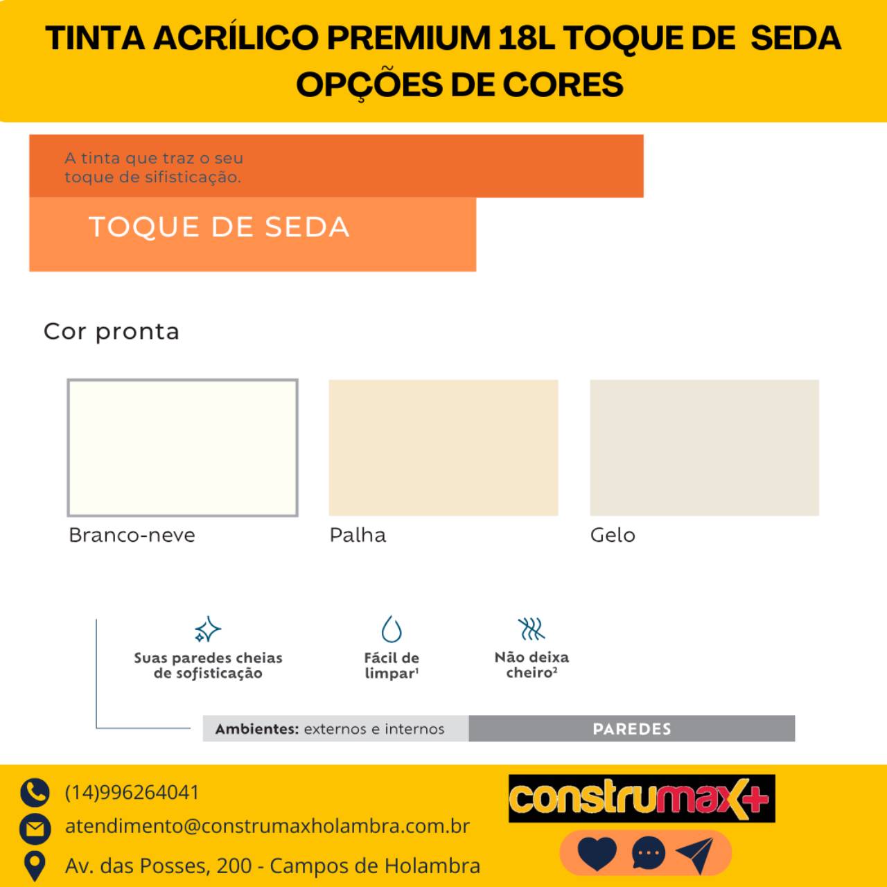 Com a Suvinil Toque de Seda, você tem um acabamento elegante, uma parede fácil de manter e a confiança de uma marca que é referência em qualidade no mercado brasileiro.